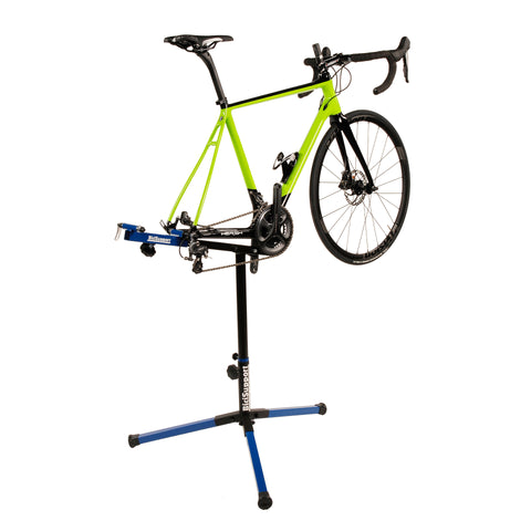 De BiciSupport Professional Team reparatiestandaard is een handig vouwbaar standaard voor het onderhoud van fietsen. Met zijn wijde poten biedt de standaard maximale stabiliteit. Het standaard kan 360 graden horizontaal draaien en de fiets kan op verschillende manieren worden bevestigd: alleen zonder voorwiel, alleen zonder achterwiel of zonder wielen. Dankzij het vouwsysteem is het standaard eenvoudig mee te nemen en de hoogte is instelbaar. Let op: deze standaard is niet geschikt voor fietsen met een steekas.