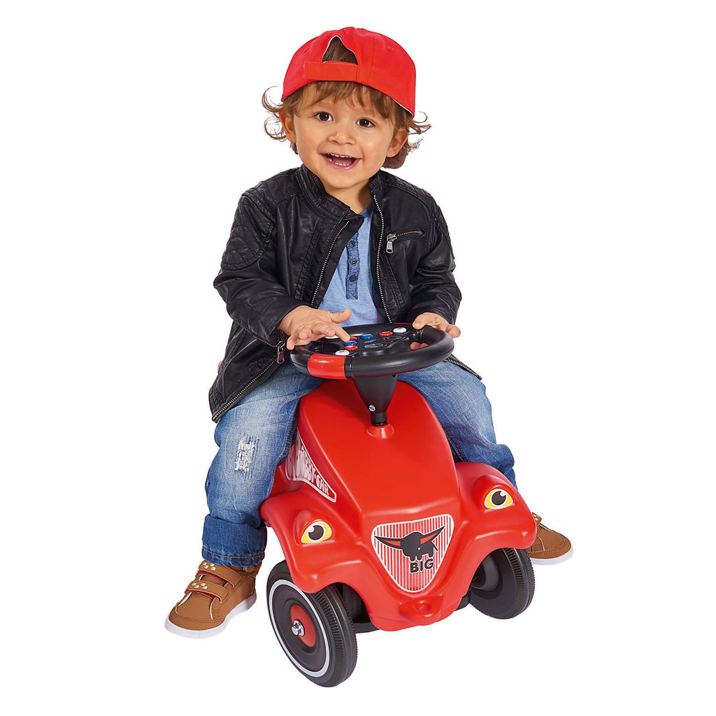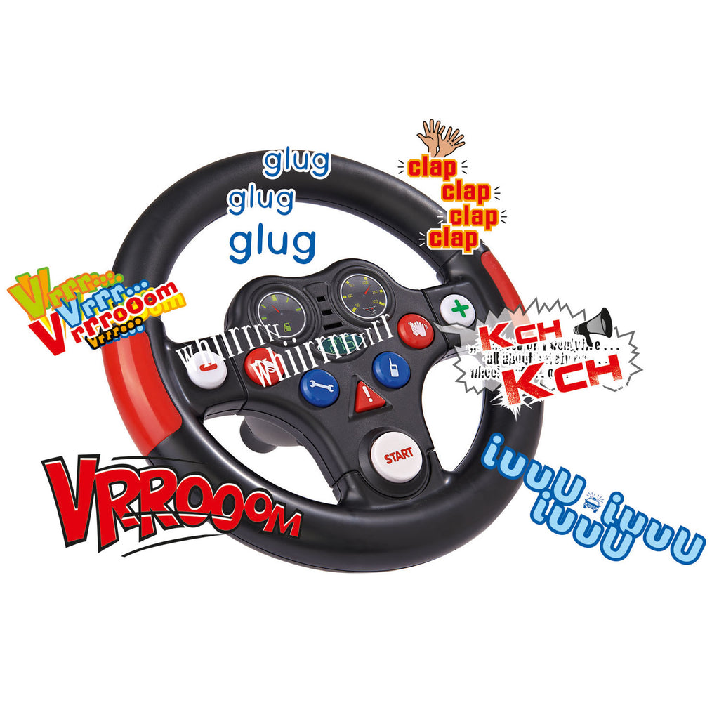 Heb je een BIG Bobby Car of een BIG New Bobby Car en wil je wel iets meer actie tijdens het rijden op deze mooie loopauto's? Kies dan voor het. Met dit stuur vervang je gemakkelijk de stuur die al op een BIG Bobby Car of een BIG New Bobby Car vast zit. Druk op de knopjes in het speelstuur en je hoort echte racegeluiden. Autorijden wordt nu echt een beleving! Werkt op 3x AAA-batterijen (batterijen zijn meegeleverd).