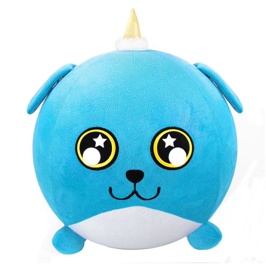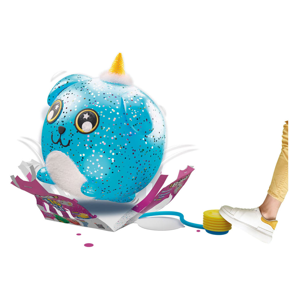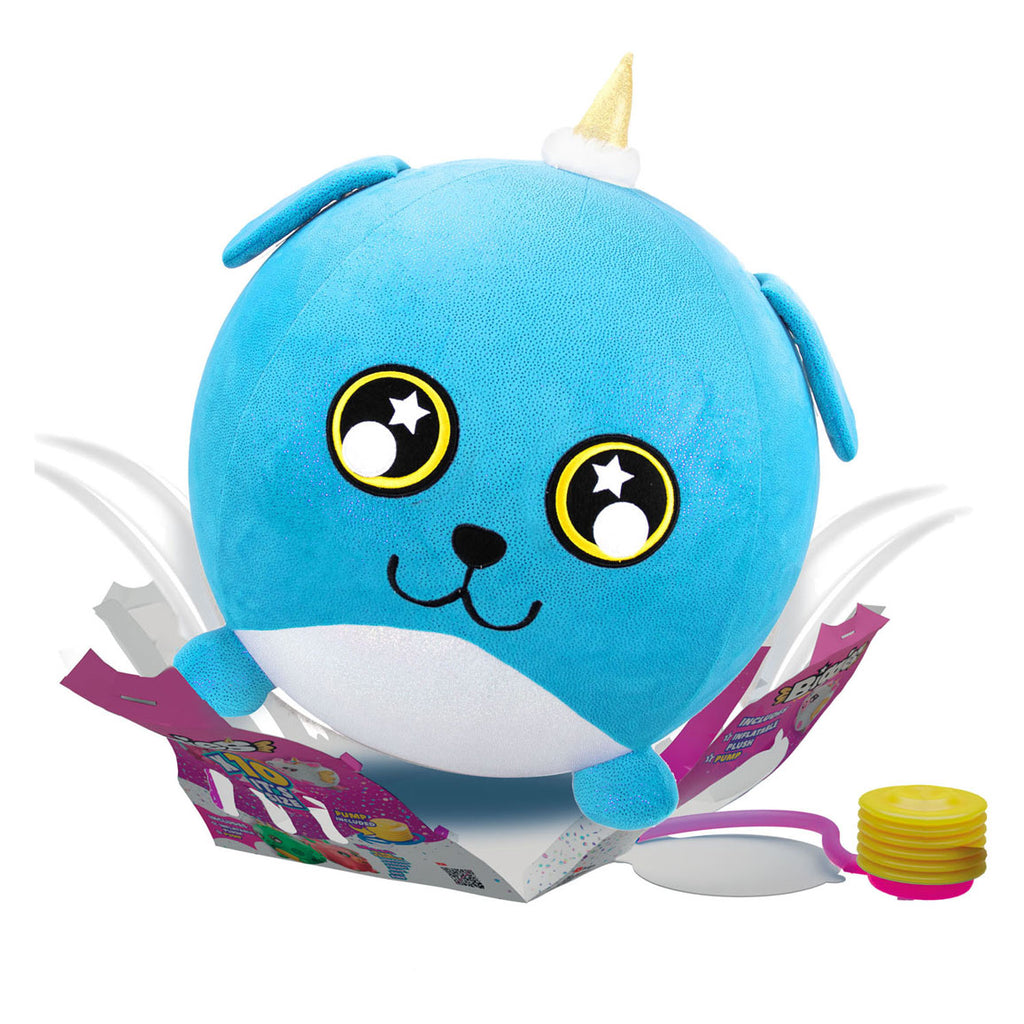 Biggies zijn veel meer dan een gewone knuffels, het zijn supergrote mega-knuffels die een fantastische unboxing-ervaring bieden. Elke knuffel zit in een driehoekige mysterieverpakking en wordt geleverd met een pomp die wordt gebruikt om je Biggies personage te decoreren met een 'PoP'-effect. De verpakking breekt open terwijl je Biggies steeds groter en groter wordt. Deze blauwe Biggies Hond is bedekt met zacht materiaal om heerlijk mee te knuffelen. Laat hem eenvoudig leeglopen als je niet meer wilt spelen en pomp hem weer op wanneer jij dat wilt! Maar heb jij een grote kamer, zet dan je Biggies in de hoek van de kamer als een echte knuffelige blikvanger! Leeftijdsindicatie: 3 jaar+.