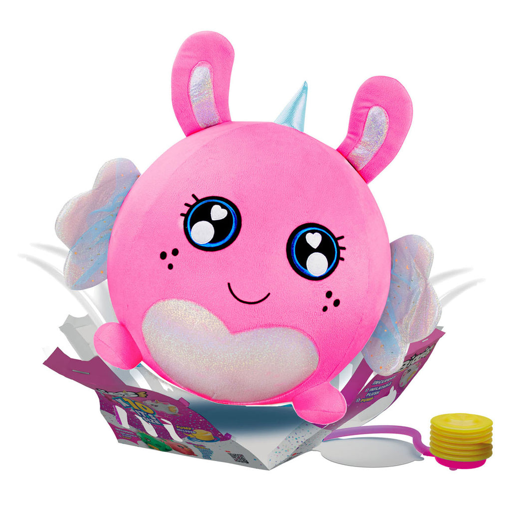 Biggies zijn veel meer dan een gewone knuffels, het zijn supergrote mega-knuffels die een fantastische unboxing-ervaring bieden. Elke knuffel zit in een driehoekige mysterieverpakking en wordt geleverd met een pomp die wordt gebruikt om je Biggies personage te decoreren met een 'PoP'-effect. De verpakking breekt open terwijl je Biggies steeds groter en groter wordt. Dit roze Biggies Konijn is bedekt met zacht materiaal om heerlijk mee te knuffelen. Laat haar eenvoudig leeglopen als je niet meer wilt spelen en pomp haar weer op wanneer jij dat wilt! Maar heb jij een grote kamer, zet dan je Biggies in de hoek van de kamer als een echte knuffelige blikvanger! Leeftijdsindicatie: 3 jaar+.
