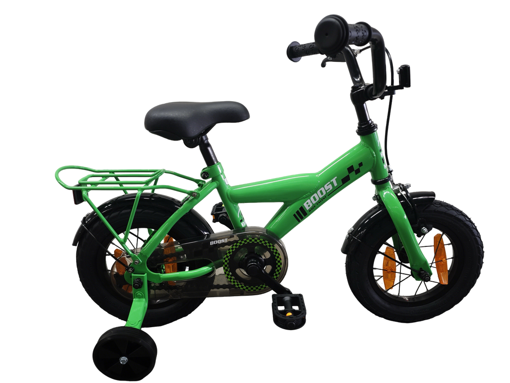 De Bikefun Boost 12 inch is een stoere jongensfiets in opvallend groen, speciaal ontworpen voor jonge fietsers van ca. 2 tot 4 jaar. Deze beginnersfiets straalt snelheid en avontuur uit met zijn raceprint, sportieve frame en robuuste afwerking. Dankzij de afneembare zijwieltjes, het stevige stalen frame en de gesloten kettingkast is deze fiets niet alleen cool, maar ook veilig en praktisch in gebruik. Kenmerken: Wielmaat: 12 inch - geschikt voor kinderen van ca. 2 tot 4 jaar Stevig stalen frame in race-look - sterk en stabiel Inclusief zijwieltjes voor een veilige start Gesloten kettingkast - voorkomt vieze of beknelde vingers Achterdrager voor extra gemak of speelplezier Terugtraprem en veilige handgrepen Reflectoren in de wielen - beter zichtbaar in het verkeer Comfortabel zadel en stevige handvatten De Bikefun Boost 12 inch is de ideale eerste fiets voor kleine snelheidsduivels met een groot gevoel voor avontuur!