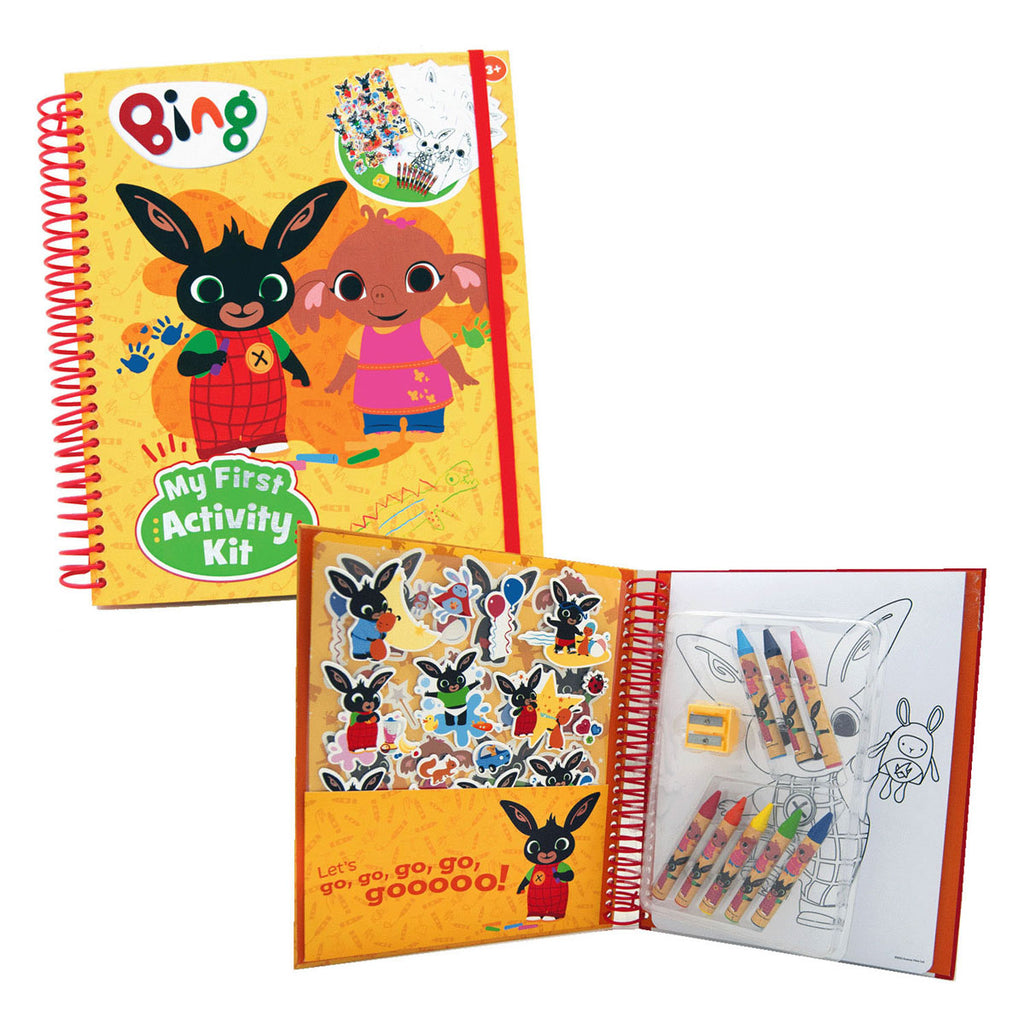 "Mijn eerste activiteitenboek" van Bing! Boordevol stickers, kleurplaten en 8 waskrijtjes in verschillende kleuren. Met de ringband en het elastiek is dit een super handig boek. Geschikt voor kinderen vanaf 3 jaar oud.