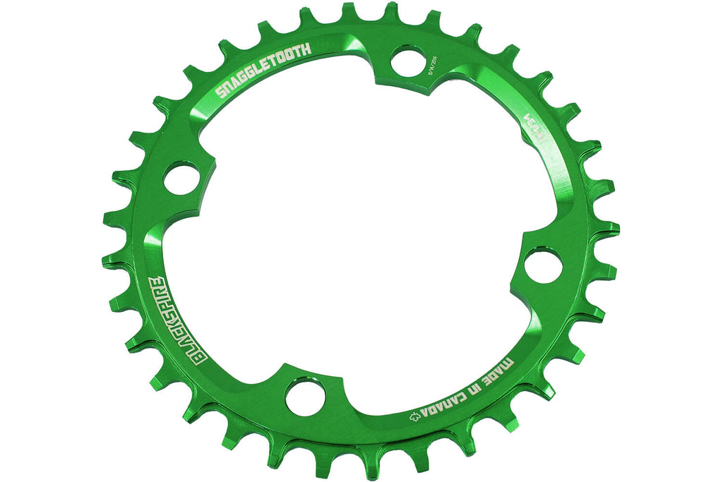 Artikelnummer: 595-334WPG EAN: 5060276568623 Merken: Blackspire Model: SNAGGLETOOTH Type: SMAL/BREED PROFIEL Materiaal: Aluminium Steek (mm): 104 Aantal kettingbladen: Single Aantal tanden: 34 Kleur.: Groen