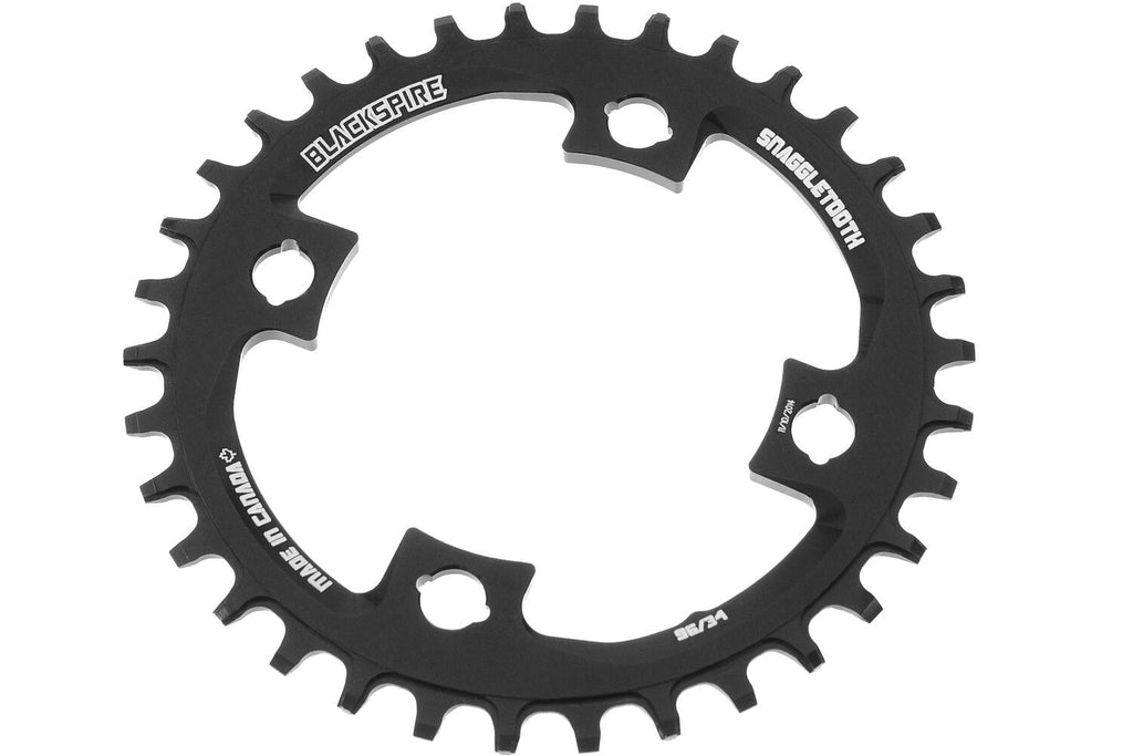 Artikelnummer: 595-49634 EAN: 5060276567541 Merken: Blackspire Model: SNAGGLETOOTH Type: SMAL/BREED PROFIEL Materiaal: Aluminium Steek (mm): 96 Aantal kettingbladen: Single Aantal tanden: 34 Kleur.: Zwart