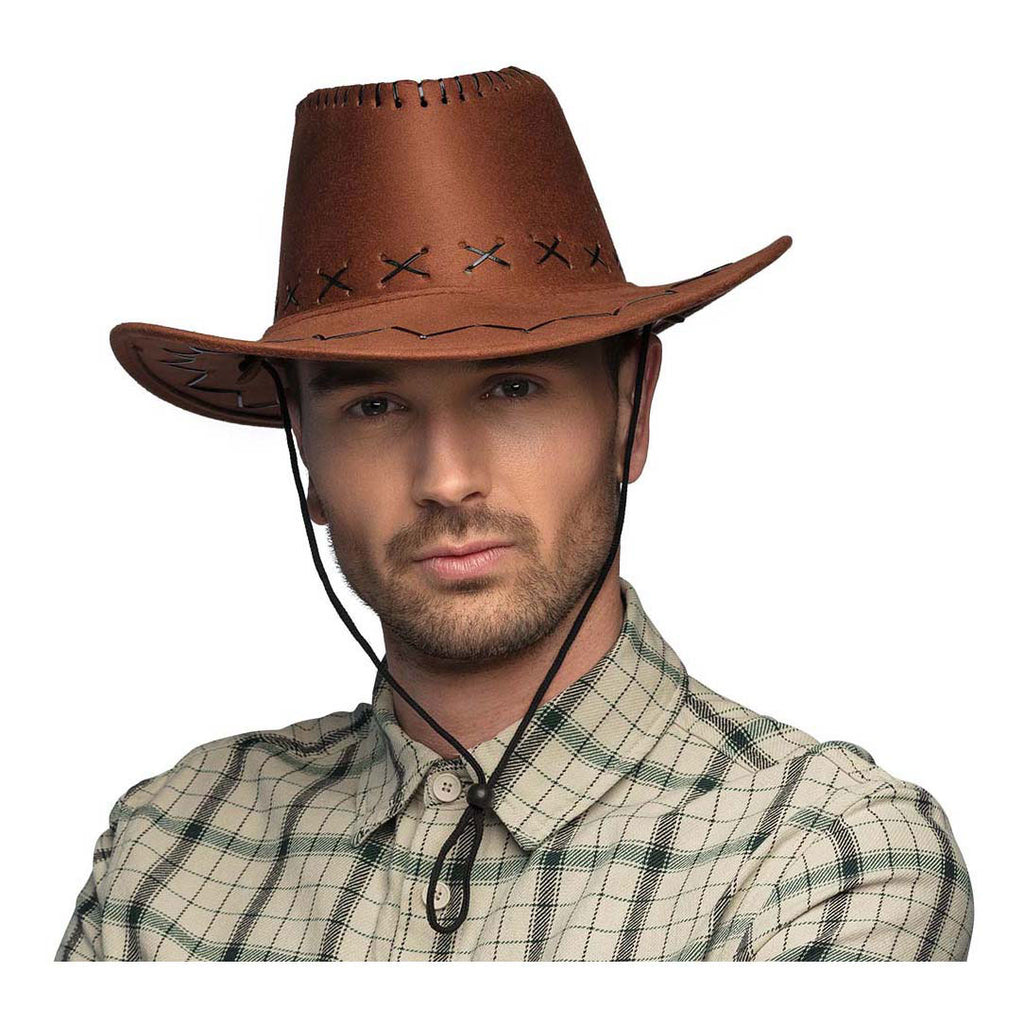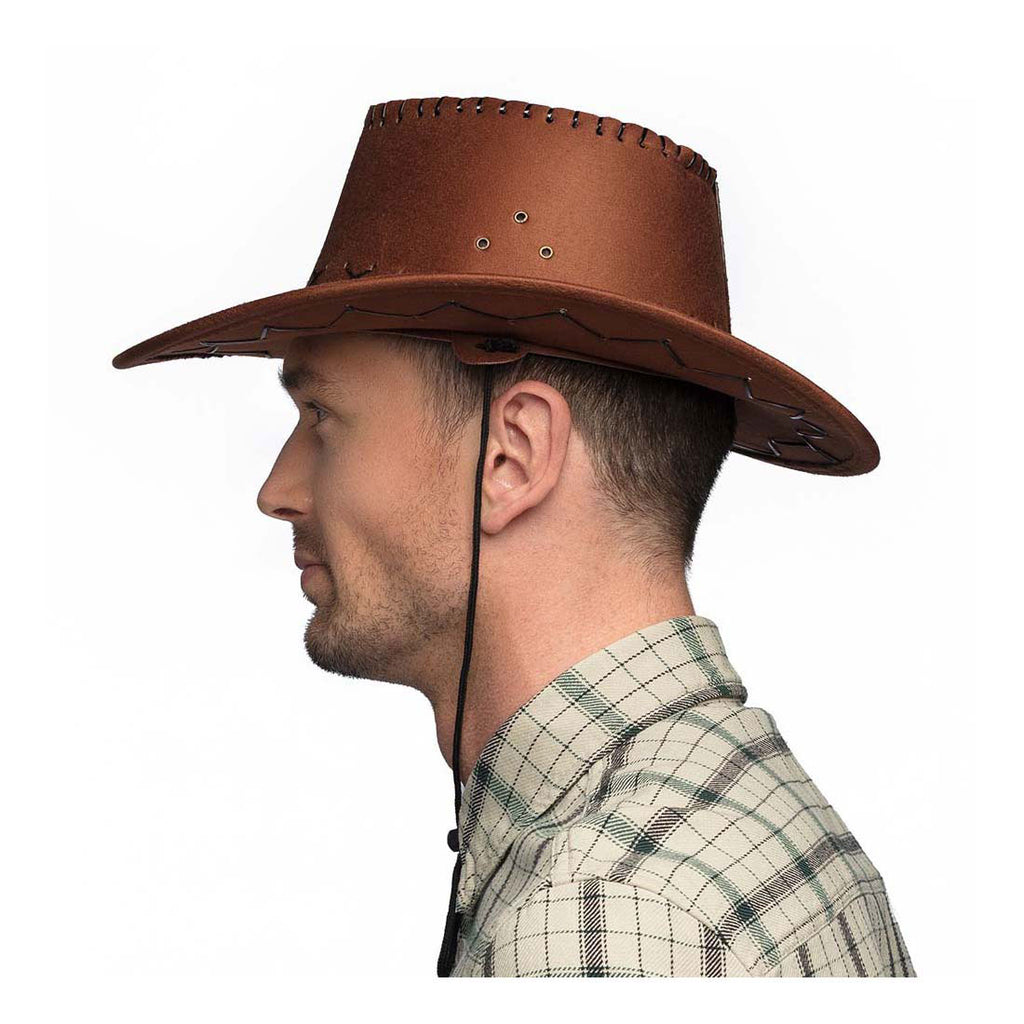 De Boland Hoed Elroy is een bruine cowboyhoed in leerlook, geschikt voor volwassenen vanaf 14 jaar. Met een hoofdomtrek van 59 cm en een comfortabele pasvorm is deze hoed ideaal voor themafeesten, carnaval of verkleedpartijen. Een stijlvolle toevoeging aan elke westernoutfit.