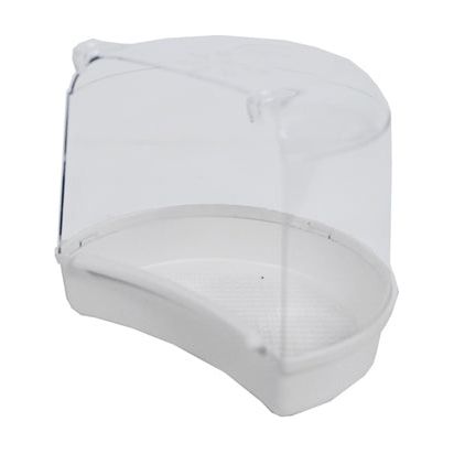 Het 15,5 x 12 x 13,5 cm is een vogelbad voor kleine vogels in ronde kooien. Het badje is zo gevormd dat het aan spijlen boven of naast openingen of deuren van de ronde kooi gehangen kan worden. De onderbak is van wit kunststof, de bovenkant transparant, zodat de vogels tijdens het badderen niet het water in het rond spetteren.