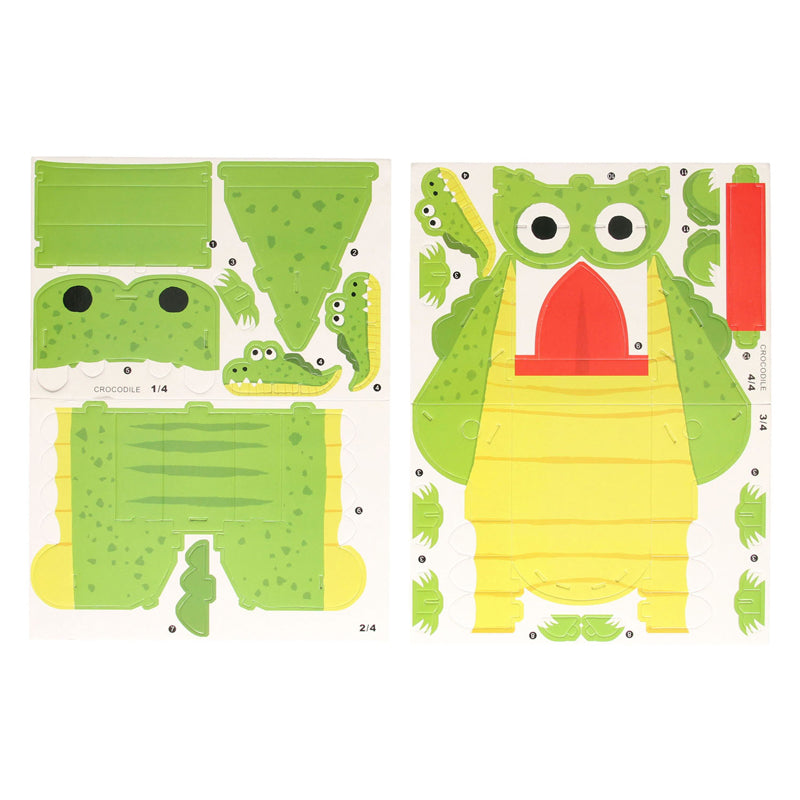 Bouwpakketje voor het maken van een 3D krokodil (21-delig). Gemaakt van papier & EPS schuim en geschikt voor kinderen vanaf 3 jaar oud.