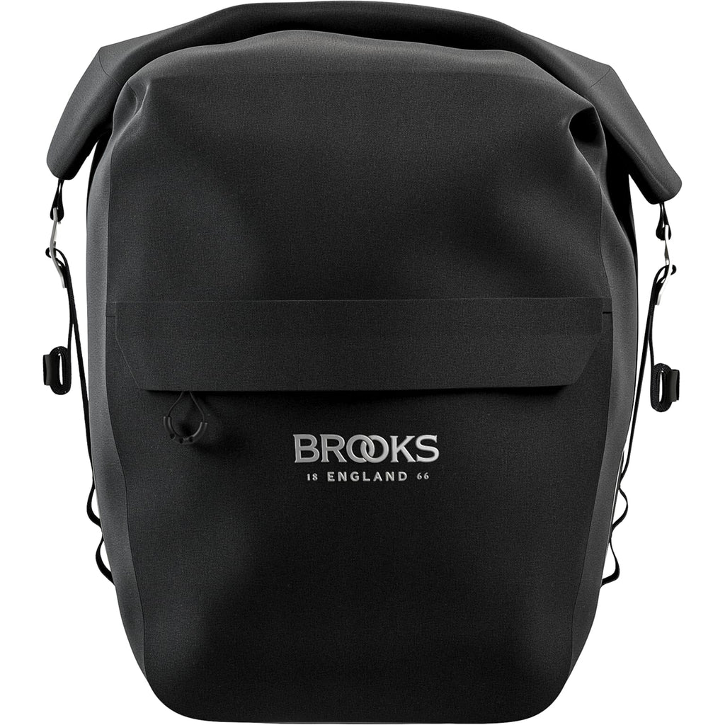 Brooks tas Scape L zwart. De Scape Large Pannier is een 100% waterdichte (IPX4 gecertificeerde) tas ontworpen voor op de bagagedrager. Met gelaste constructie en rolsluiting en interne klittenband. Deze tas is voor toerfietsen gemaakt en van duurzame details voorzien. Er is een speciale modulaire functionaliteit voor de modulaire Compact en Pouch bag uit het Scape-assortiment van een achterlicht te bevestigen aan de lussen van de tas. Voorzien van een aluminium Klick Fix bevestiging, een systeem dat op de meeste bagagedragers verleden tijd is. Ook als schoudertas te dragen door de schouderriem TDB01 bij te bestellen. Inhoud 18-22 liter. Afmetingen breedte 320 x hoogte 400-600 x diepte 160 mm. Gewicht 760 gram. Materiaal 600 denier polyester. > 50.000 waterkolom waterdicht. PVC en PFC vrij.