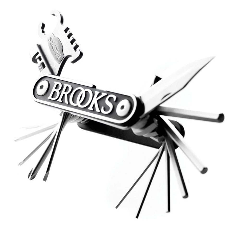 Brooks Multitool MT22. Naast leren zadels en fietstassen heeft Brooks ookgereedschappen voor fietsers gemaakt. De Brooks Multitool heeft 21 functies, waaronder een spansleutel voor uw leren Brooks zadel. Kleur: Zwart.