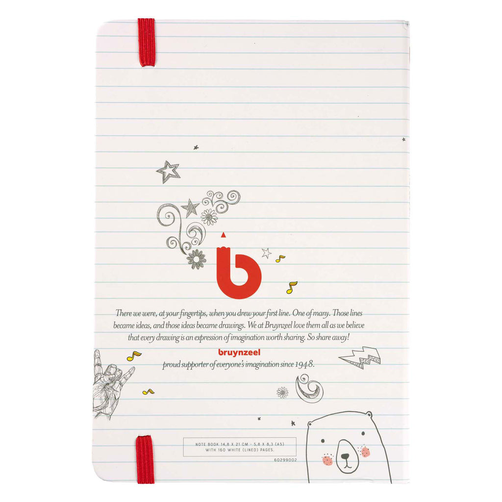 Gelinieerd notitieboek met 160 pagina's van 80 g/m², voorzien van harde kaft met ronde hoeken, zuurvrij papier, bladwijzer (lint) en elastieken sluiting. Ideaal voor al je (school)meldingen. Perfect om te gebruiken met Bruynzeel producten.