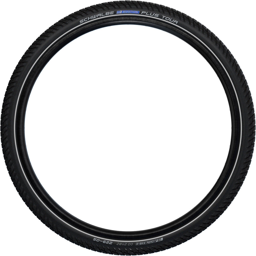 De Schwalbe Marathon Plus Tour buitenband is een uitstekende keuze voor zowel dagelijks gebruik als lange tochten. Met zijn robuuste opbouw en SmartGuard-technologie biedt deze band maximale lekbescherming en betrouwbaarheid. Of je nu op asfalt of ongebaande paden rijdt, deze veelzijdige band voelt zich thuis op elke weg. Bovendien is de Marathon Plus Tour geschikt voor E-bikes met een trapondersteuning tot 50 km/u. Met zijn markante trekkingprofiel en reflecterende eigenschappen zorgt deze band voor optimale grip en zichtbaarheid. Productspecificaties: - Merk: Schwalbe - Type: Marathon Plus Tour - Gebruik: Stad - Lekbescherming: Hoog - Reflectie: Ja - Vouwbaar: Nee - ETRTO: 47-622 - Gewicht (gram): 1065 - Inchmaat: 28 - Maximale druk: 5 - Keurmerk E-bike: E-bike tot 50 km/h - Rolweerstand: Midden
