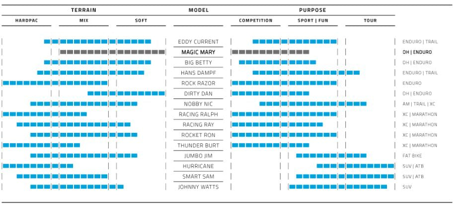 De Schwalbe Magic Mary buitenband is de ultieme zwaartekrachtband en de favoriet van downhill- en enduro-atleten. Deze band heeft perfecte allround-eigenschappen voor vrijwel alle ondergronden en omstandigheden. Het geraffineerde intermediaire profiel, gecombineerd met de beste verbindingen en constructie, verlegt de grenzen tot ongekende hoogte. De sterke schoudernoppen en het agressieve, open profieldesign zorgen voor maximale remtractie en grip in bochten, zelfs op modderige ondergronden. Met de speciaal omgeving V-Groves heeft elke nop nog meer verticale met de ondergrond voor nog meer grip. De schuine vlakke noppen in het centrum van het lusvlak ondergronds het rijgedrag. Deze band is geschikt voor mountainbikes en heeft een bandenmaat van 27,5x2.40 inch. Het is een draadband met een gewicht van 1525 gram en een maximale druk van 3,5 bar. De Magic Mary buitenband heeft een ETRTO bandenmaat van 62-584 en is zwart van kleur. Productspecificaties:
