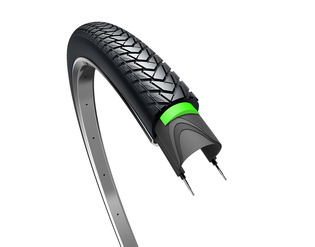 De Edge Traveller is een dynamische middenklasserband die perfect is voor zowel geplaveide als ongeplaveide wegen. Met zijn ultramoderne profiel biedt deze band een lichte rol en een goede grip, zelfs bij hoge snelheden. Daarnaast zorgt het voor een 3 mm dikke anti-lekbescherming voor betrouwbare lekbescherming tijdens alledaags gebruik.