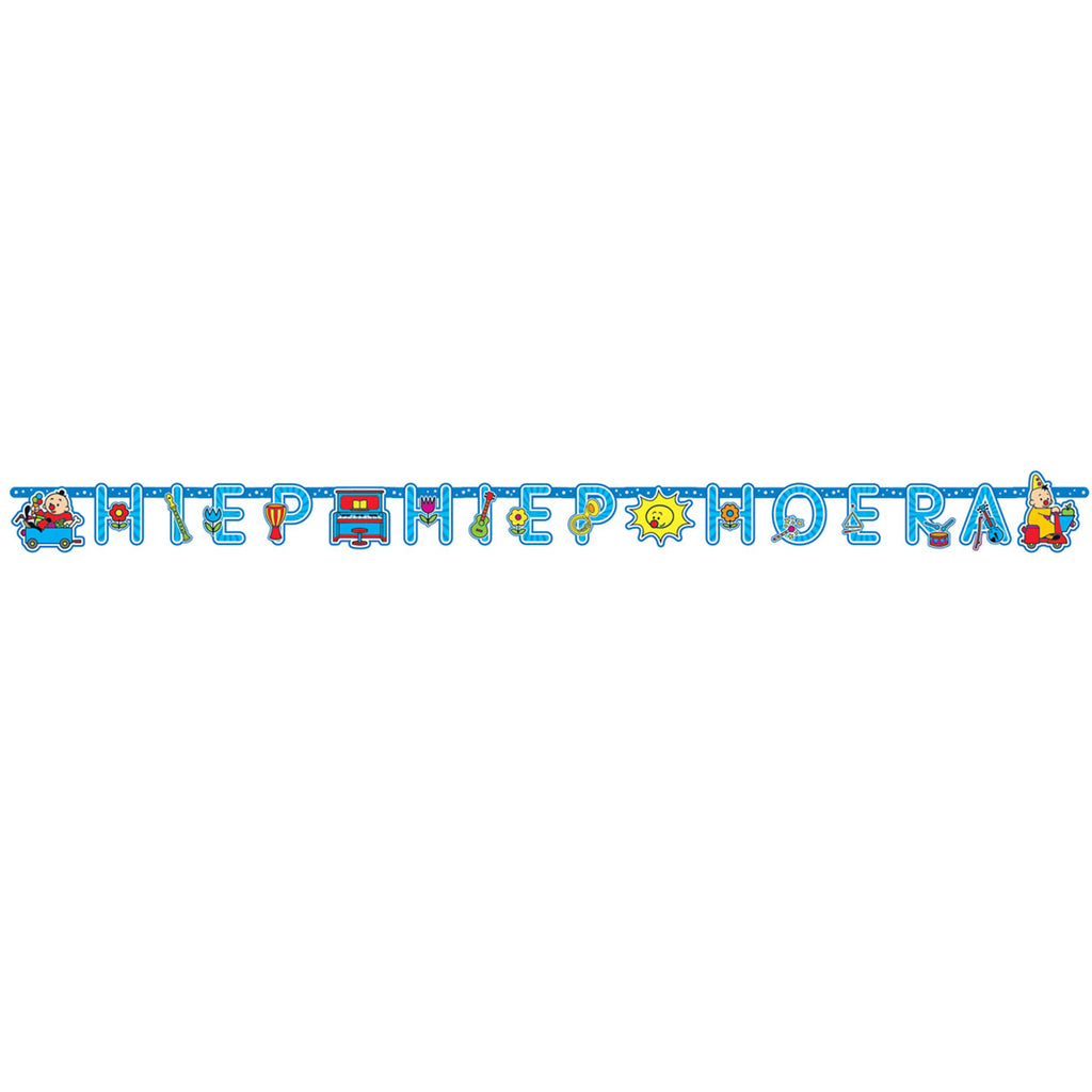 Dubbelzijdige Bumba letterslinger met de tekst Hiep Hiep Hoera.