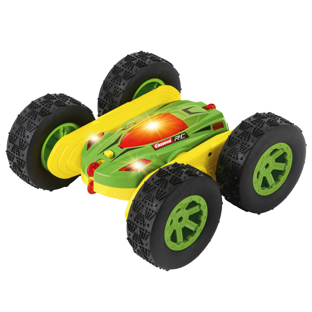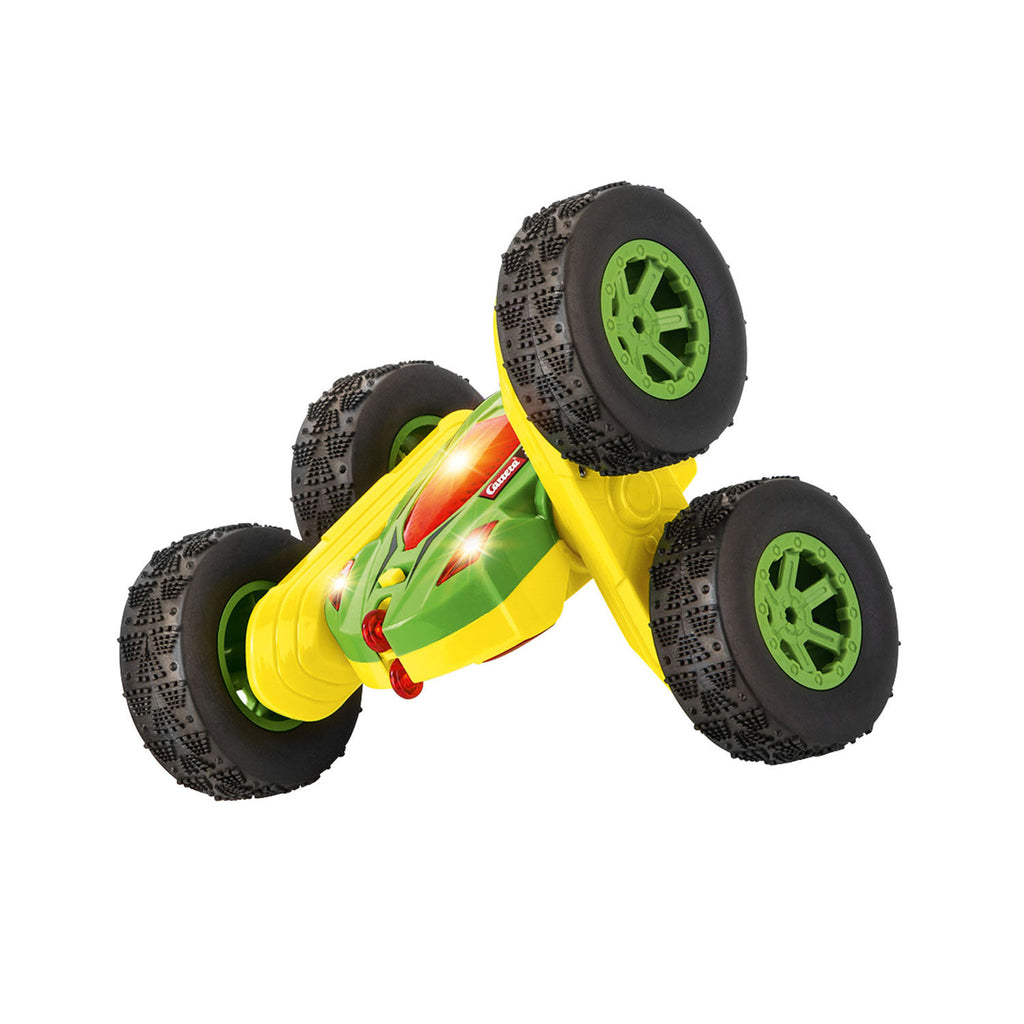 De Carrera RC - Mini Turnator 2.0 is een geweldige bestuurbare auto voor urenlang speelplezier. Met de meegeleverde oplaadbare batterij en USB-oplaadkabel kun je de auto eenvoudig opladen. Daarnaast worden er ook 2 AAA-batterijen meegeleverd. De rijtijd van de auto is 15 minuten, dus je kunt lang genieten van het racen. De oplaadtijd is slechts 60 minuten, dus je hoeft niet lang te wachten voordat je weer kunt spelen.