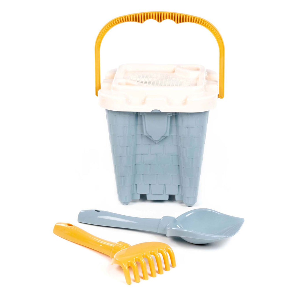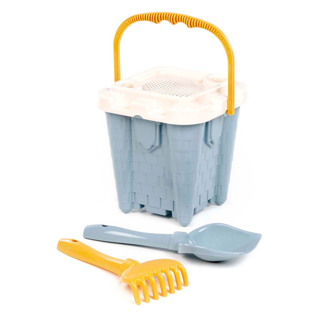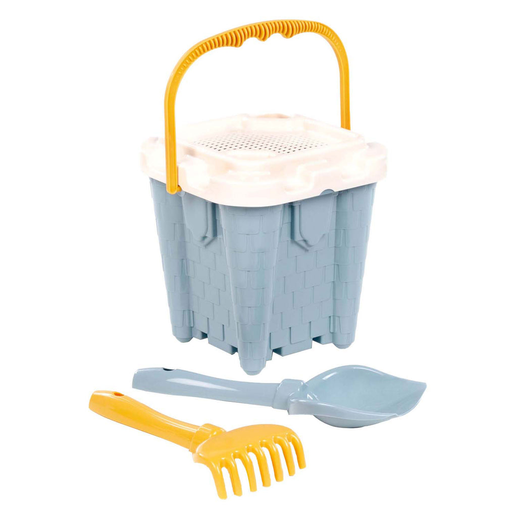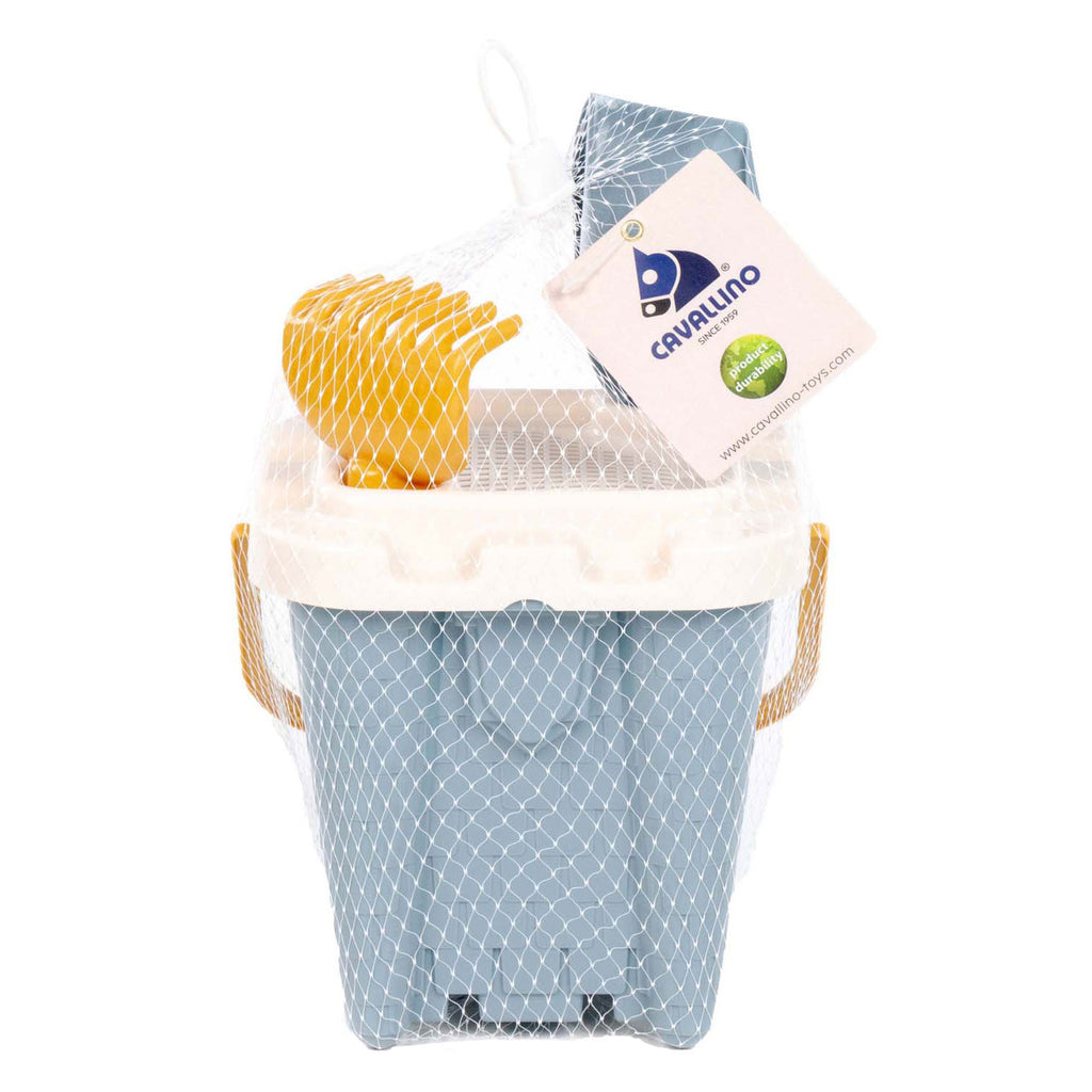 Cavallino kasteel blauwe emmerset, 4dlg. Met 1 hark, 1 schep en 1 zeefdeksel. Geschikt voor kinderen vanaf 12 maanden oud.