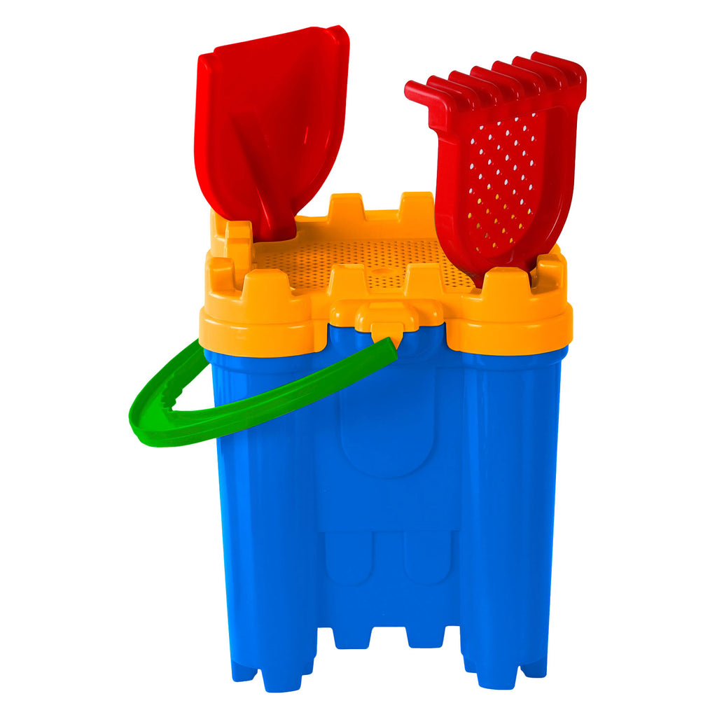 De Kasteelemmerset! Deze levendige emmer brengt de magie van kastelen naar de speelkamer. Laat je kleintjes genieten van het bouwen en creëren van hun eigen koninkrijk met deze kleurrijke set. De set is 29 x 27,5 x 41 centimeter groot en geschikt voor kinderen vanaf 12 maanden.
