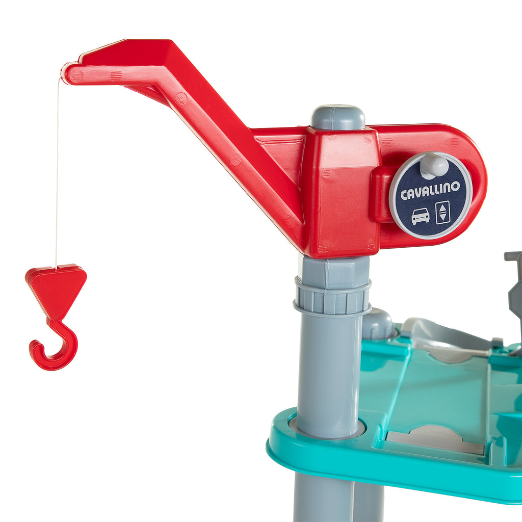 Cavallino Parkeergarage Speelset - Toren met 7 Verdiepingen en Auto's. De speelset bevat 3 vertuigen (2x auto, 1x vliegtuig) en verschillende speelmogelijkheden, zoals een wasstraat, een lift, een hijskraan en benzinepomp. Afmetingen: 68 x 68 x 98 centimeter. Geschikt voor kinderen vanaf 3 jaar oud.