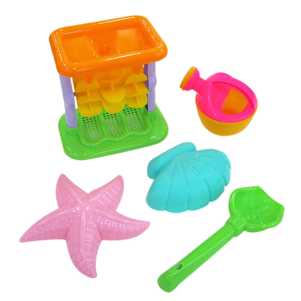 Laat zand of water door de trechter vallen en zie hoe de molen in beweging komt. Speel met het gietertje, vul de vormpjes en schep los met deze Zandbakspeelset, 5dlg.