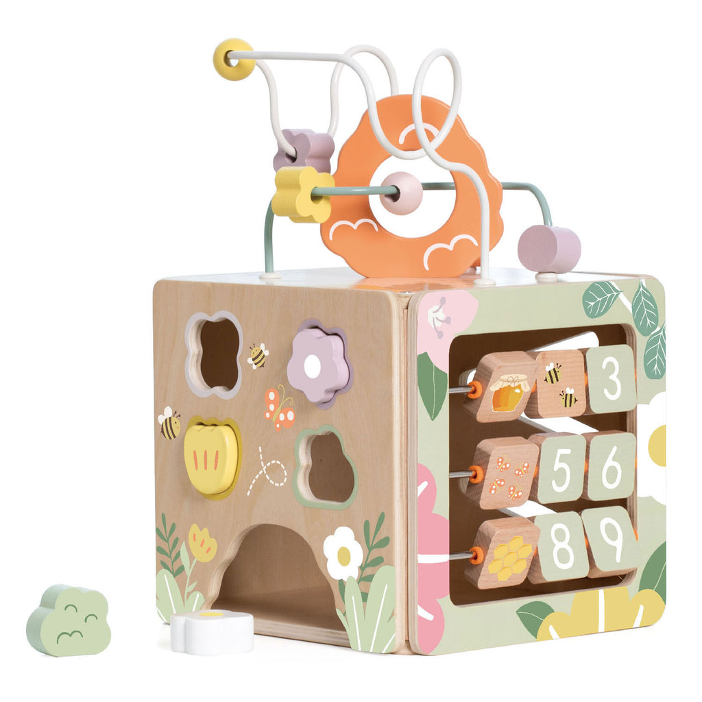 Klassieke wereld houten activiteitenkubus honenbij, 5dlg.