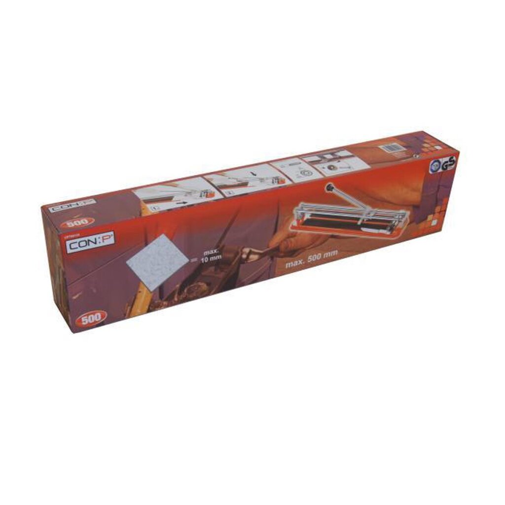 De CON:P tegelsnijder is geschikt voor het snijden van tegels van platen tot 500mm. De tegelsnijder is voorzien van een hardmetalen wiel (1,5mm x 15mm) en kan gaan tot een tegeldikte van 10mm. Voor het diagonaal snijden van tegels bevat een maximale lengte van 350 x 350mm
