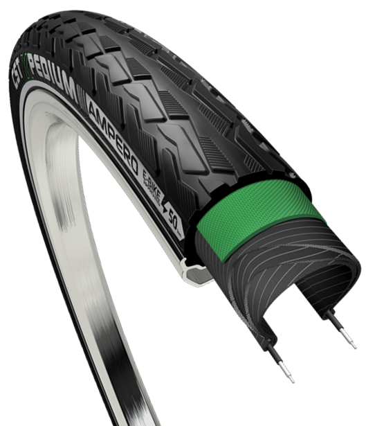 De Xpedium Ampero is de beste keuze voor E-bikes, vooral voor degenen die tot 50 km/u rijden. Met een 60 draden karkas en een EPS anti-lek laag is deze band bestand tegen scherpe voorwerpen en duurzaam. De band is gekeurd door de Dekra en draagt de ECE norm tot 50 km/u. De Xpedium Ampero biedt lekveiligheid met een geweven laag van polyvezelmateriaal tussen het loopvlak en het karkas. Het rubber is speciaal ontwikkeld door autobandeningenieurs, waardoor de band slijtvast is en perfect is om snel door de bocht te gaan. Geschikt voor E-bikes tot 50 km/u. Specificaties: - 28'' buitenband - Bub CST Ampero 28x5/8x3/8 - CST buitenband Xpedium Ampero R Zwart 28x1 3/8/37-622 - Sterk karkas met 60 TPI - Betrouwbare EPS anti-leklaag