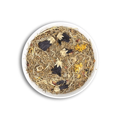 Samenstelling: Granen, weidehooi, zonnebloemmeel, sojabonen, tarwemeel, gerstmaïs, heemst, kaasjeskruid, malrove, cottsfoot, dichtbloemige toorts, berk, natuurlijke prebiotica en probiotica, kastanje, oranjebloesem, hysop