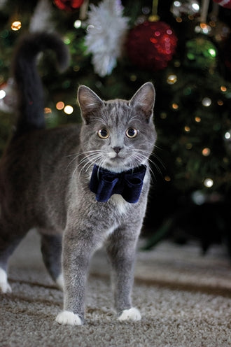 De in maat S is een vlinderdas voor de kat of kleine hond, van blauwe fluweel om eenvoudig aan de halsband te schuiven. Jouw viervoeter steelt de show op de kerstkaart of kerstfoto! Deze vlinderstrik is gemaakt van trendy blauwe fluweel en eenvoudig aan de halsband van jouw dier te schuiven. De das is van hoge kwaliteit en perfect om jouw dier te laten dragen op feestdagen of voor foto's. Verkrijgbaar in twee maten!