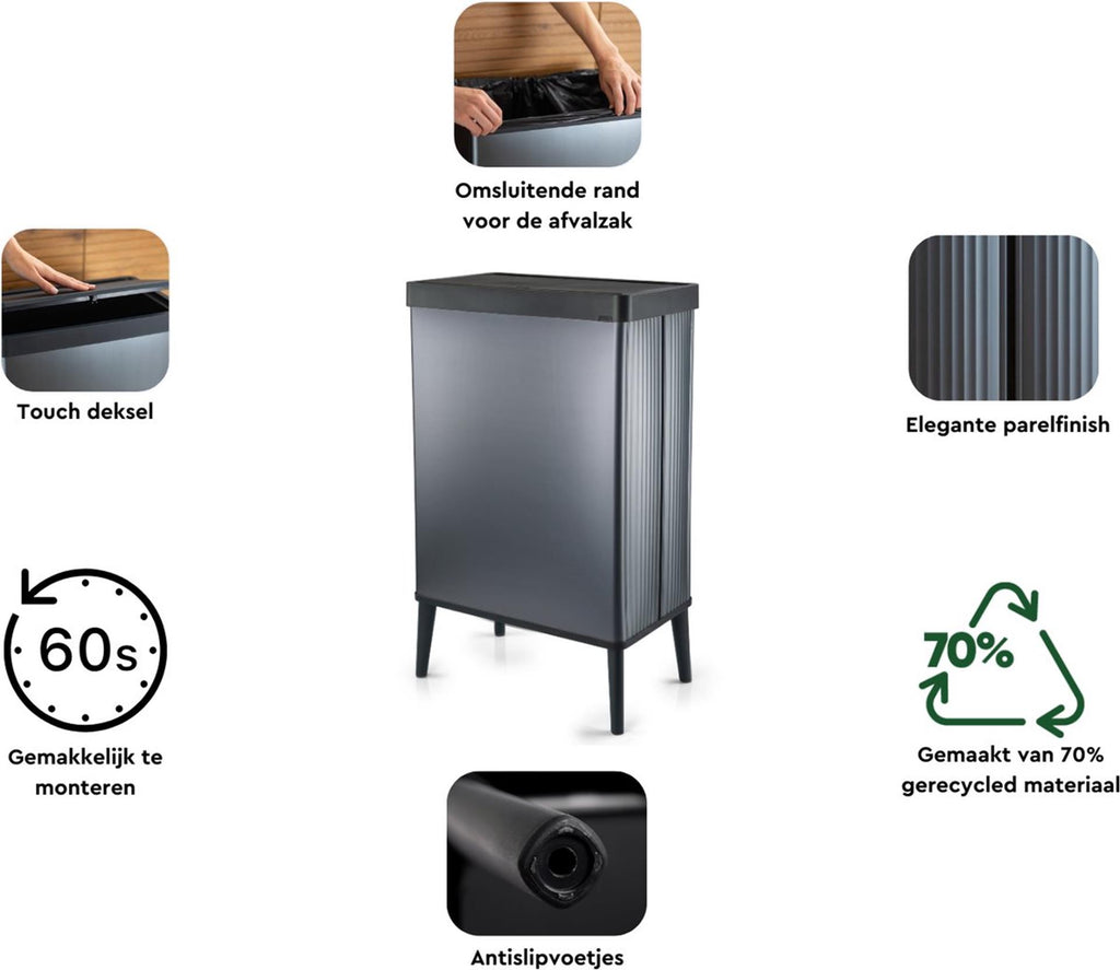 Heb je vragen over deze Curver verto hoge prullenbak 54l push parelgrijs?