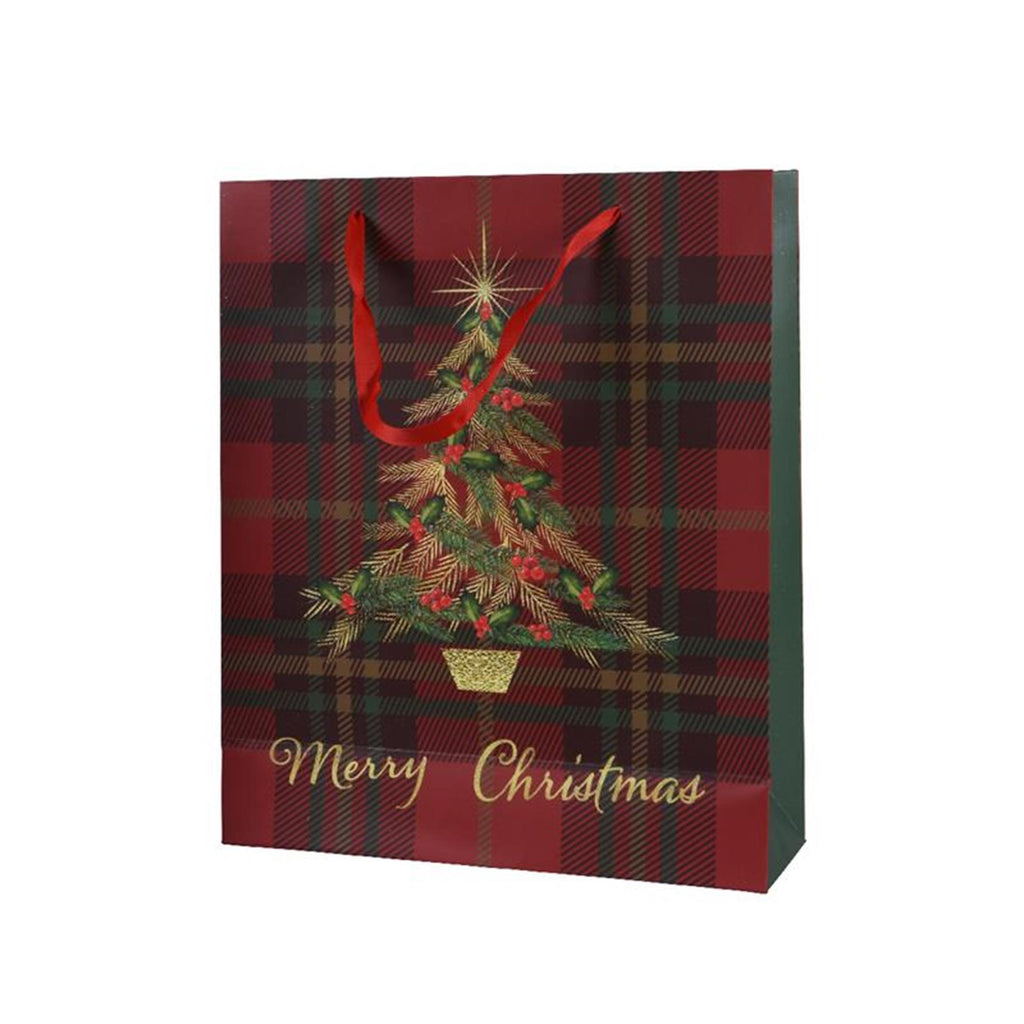 Decoris geschenktas kerstboom rood 8x18x24cm