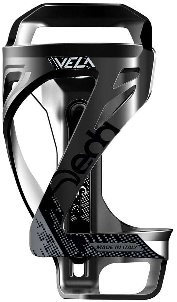 Vela is een bidonhouder voor zijwaartse insteek voor een universele klemming waardoor u de bidon zijwaarts van rechts kunt pakken.