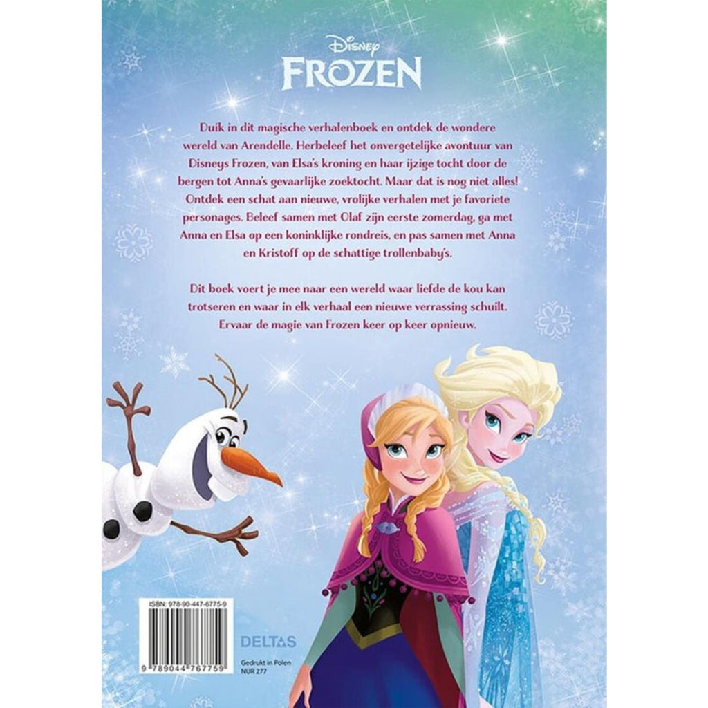 Duik in dit prachtige verhalenboek van Disney Frozen en ontdek de wondere wereld van Arendelle. Herbeleef het onvergetelijke avontuur van de film, van Elsa's kroning en haar ijzige tocht door de bergen tot Anna's gevaarlijke zoektocht. Maar dat is nog niet alles! In dit boek staan ook een heleboel nieuwe, vrolijke verhalen met je favoriete personages. Beleef samen met Olaf zijn eerste zomerdag, ga met Anna en Elsa op een koninklijke rondreis, en pas samen met Anna en Kristoff op de schattige trollenbaby's. Kies een van de verhalen en geniet samen met je kind keer op keer van een wonderlijk (voor)leesmomentje! Kwalitatieve hardback uitgave. Duik in dit prachtige verhalenboek van Disney Frozen en ontdek de wondere wereld van Arendelle. Herbeleef het onvergetelijke avontuur van de film, van Elsa's kroning en haar ijzige tocht door de bergen tot Anna's gevaarlijke zoektocht. Maar dat is nog niet alles! In dit boek staan ook een heleboel nieuwe, vrolijke verhalen met je favoriete personages. Beleef samen met Olaf zijn eerste zomerdag, ga met Anna en Elsa op een koninklijke rondreis, en pas samen met Anna en Kristoff op de schattige trollenbaby's. Kies een van de verhalen en geniet samen met je kind keer op keer van een wonderlijk (voor)leesmomentje! Kwalitatieve hardback uitgave.