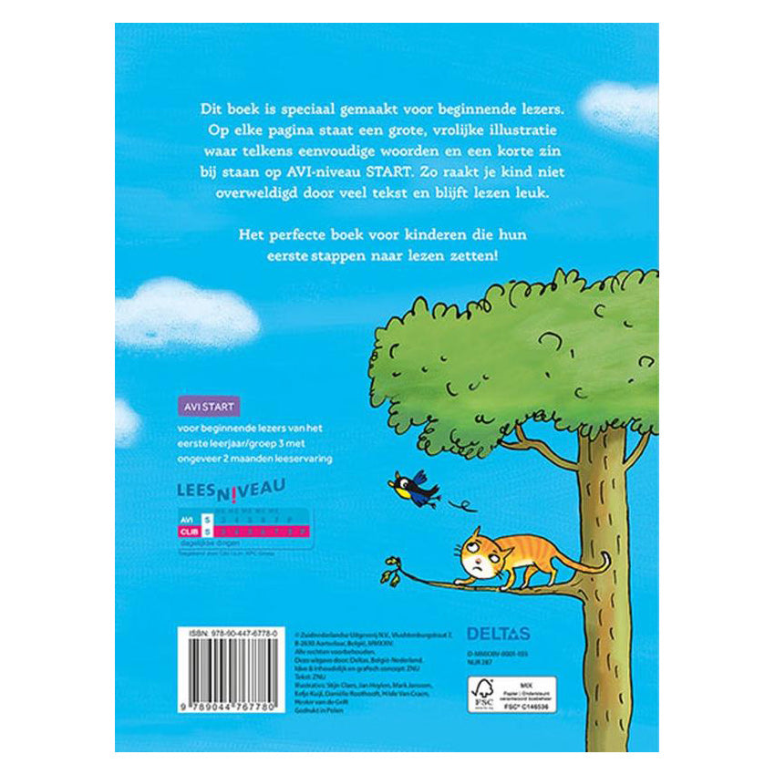 Dit boek is speciaal gemaakt voor beginnende lezers. Op elke pagina staat een grote, vrolijke illustratie waar telkens eenvoudige woorden en een korte zin bij staan op AVI-niveau START. Zo raakt je kind niet overweldigd door veel tekst en blijft lezen leuk. Het perfecte boek voor kinderen die hun eerste stappen naar lezen zetten!