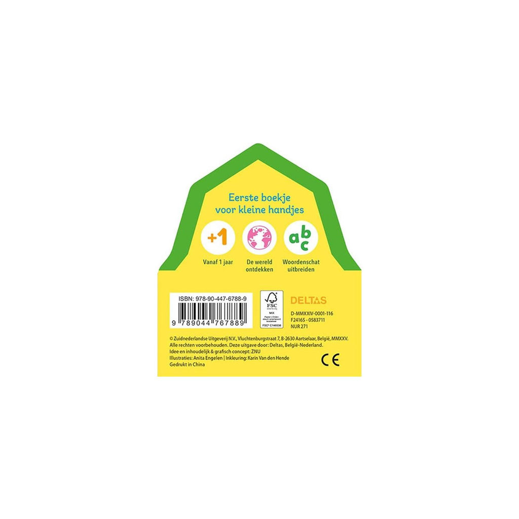 Deltas – Allereerste Woordjes: Op de Boerderij is een stevig kartonboekje waarmee peuters op een speelse manier hun woordenschat uitbreiden. Met herkenbare illustraties van dieren, voertuigen en voorwerpen van de boerderij leren kinderen hun eerste woordjes terwijl ze kijken, aanwijzen en benoemen. Het boek is speciaal ontworpen voor kleine handjes, met dikke pagina’s en een compact formaat. Perfect voor het stimuleren van taalontwikkeling op jonge leeftijd. Een leerzaam en aantrekkelijk product voor babywinkels, boekhandels en cadeauwinkels.