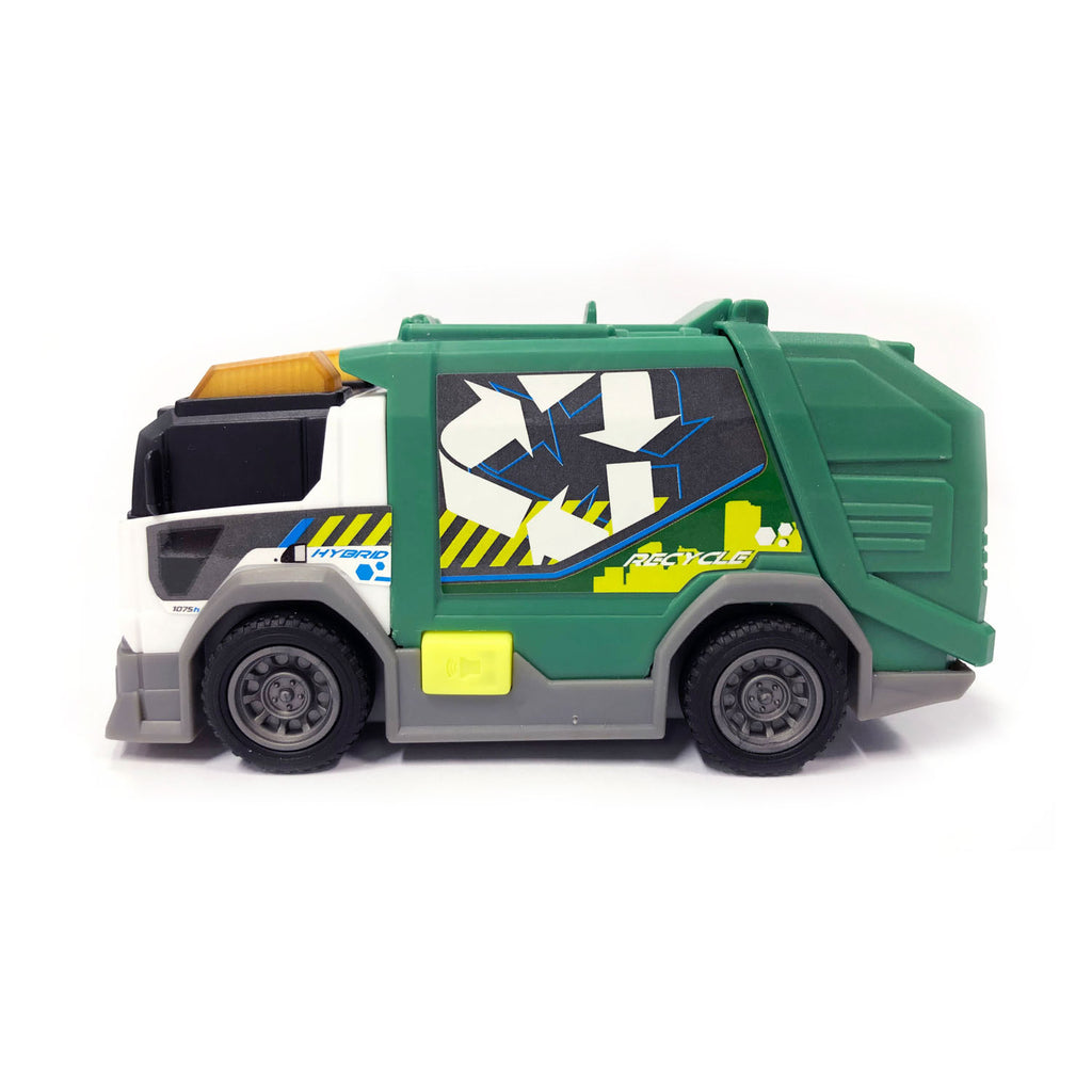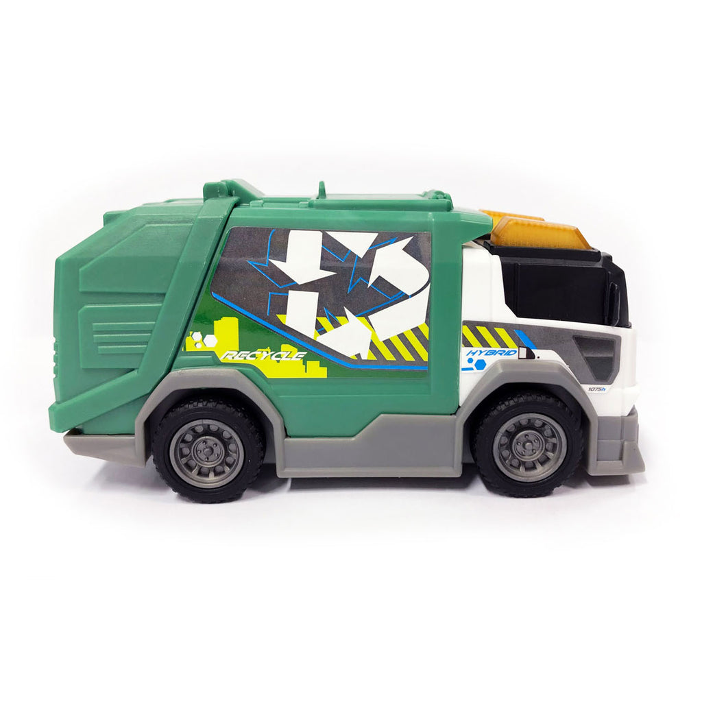 - Het afvalvoertuig heeft realistische geluidseffecten en een oranje waarschuwingslampje om andere weggebruikers te duidelijk.