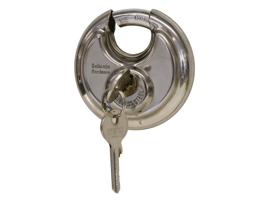 Het minerale Carpoint discusslot kan gebruikt worden als hangslot in combinatie met een ketting. Ook geschikt om te gebruiken als slot voor een disselslot. Het discusslot heeft een diameter van 70 mm en wordt geleverd met twee sleutels. Gemaakt van roestvrij staal