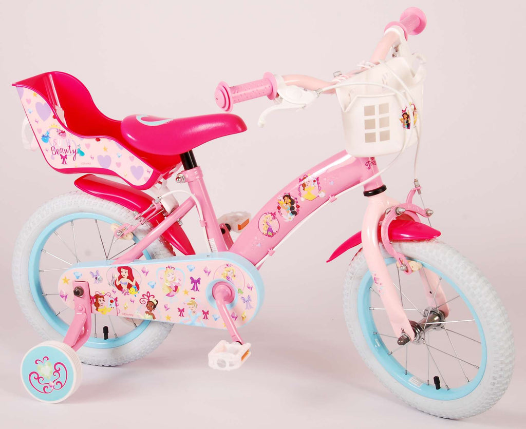 Specificaties van deze Disney Princess Kinderfiets - Meisjes - 14 inch - Roze - Twee Handremmen
