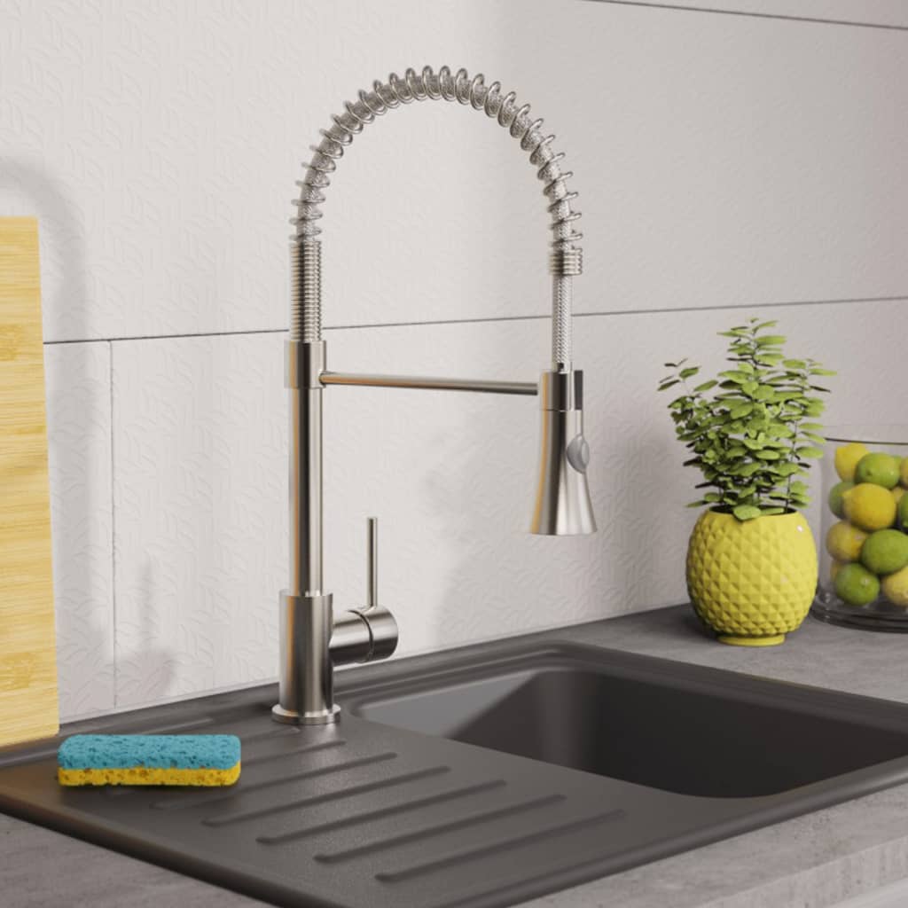 - Een hele set: de kraan heeft een flexibel metalen ontwerp van aansluitslang, spiraalveer, metalen handgreep aan de zijkant, keramische schijven en een geluidsarm, verwisselbaar cartouche van 35 mm, waardoor hij geschikt is voor de meeste spoelbakken.