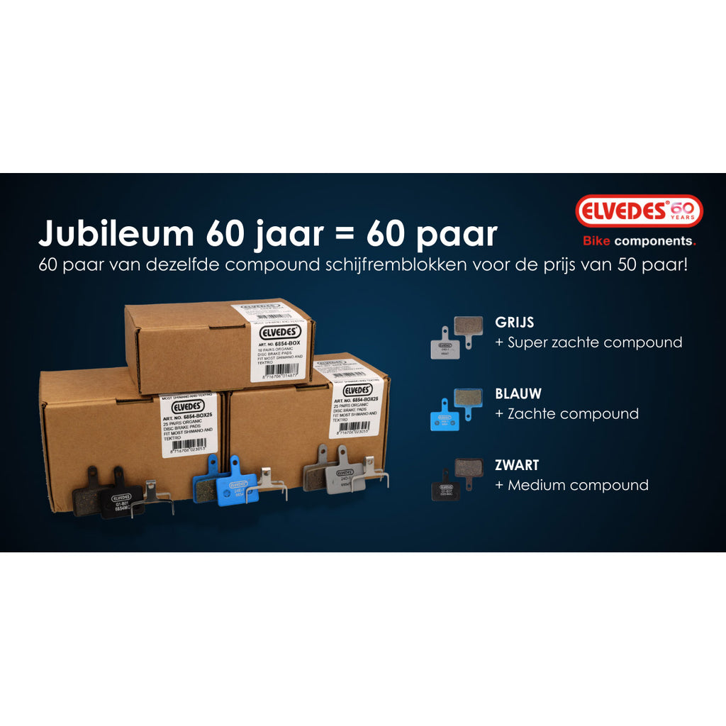 60 paar zachte compound schijfremblokken voor Shimano BR-M375, M415-M495, M515, M525, M575, C501, C601,C607 / Tektro Auriga (Pro-(E-)Comp), Draco, Orion, Aquila / RST D-power. Bestel het actiepakket met 60 paar schijfremblokken (type 6854) in de noodzakelijke remcompound (grijs, blauw of zwart) en betaal slechts voor 50 paar. Je ontvangt dus 10 paar gratis!
