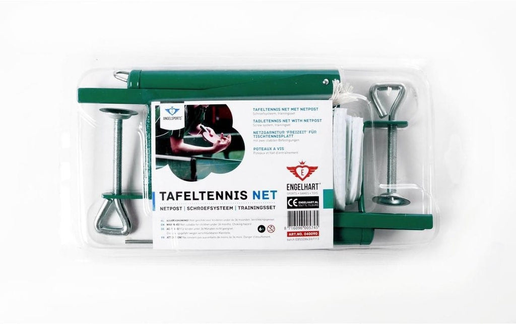 . Met de Netpostcombinatie Training officieel formaat van Engelhart Games ben je helemaal klaar voor een potje tafeltennis! Dit groene net inclusief groene metalen posten wordt geleverd in een handige blisterverpakking, compleet met spankoord voor het net. De set is geschikt voor wedstrijdtafelmaat, met een breedte van 152,5 cm. De netpostcombinatie is van goede kwaliteit en dat allemaal voor een zeer succesvolle prijs. Zo kun je thuis of op de club genieten van eindeloos tafeltennisplezier. Met deze set ben je verzekerd van urenlang speelplezier en kun je je tafeltennisvaardigheden naar een hoger niveau tillen.