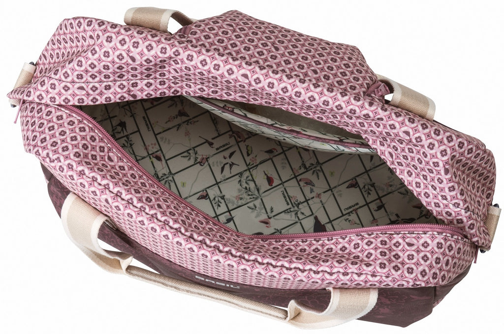 De Basil Bohème fietsschoudertas is een paar rode fietstas die er stijlvol uitziet, maar ook nog eens erg gemakkelijk in gebruik is. De tas heeft een inhoud van 18 liter en de bohomien print zorgt voor een elegante uitstraling. Door het Hook-On System is het geschikt voor vele bagagedragers (ook e-bike) en kun je hem eenvoudig aan je bagagedragerhaken maken. Dit systeem is mooi weggewerkt met behulp van een apart ritvakje. De tas beschikt over twee hengels en een afneembare schouderhengsel, waardoor je hem als schouder-, hand- en fietstas kunt gebruiken. Een fietsrit naar de supermarkt of een lunchafspraak met die vriendin, deze fietstas maakt jouw (boho) look compleet en de fietsrit gemakkelijker. De fietstas is voorzien van een binnenzak, stevige binnenvoering, kunstlederen details en een verbrand. Door het waterafstotende polyester blijft de inhoud van de tas droog bij een kleine regenbui. De reflectiedetails op beide kanten zorgen ervoor dat je beter zichtbaar bent in het donker. Deze Basil Bohème Carry All is verkrijgbaar in meerdere kleuren waaronder rood en blauw. Ben jij fan van mixen en matchen? Neem dan een kijkje bij de standaard bohemian zadelhoezen en fietsbellen. Eigenschap: De fietstas is geschikt voor diverse bagagedragers (ook e-bikes).