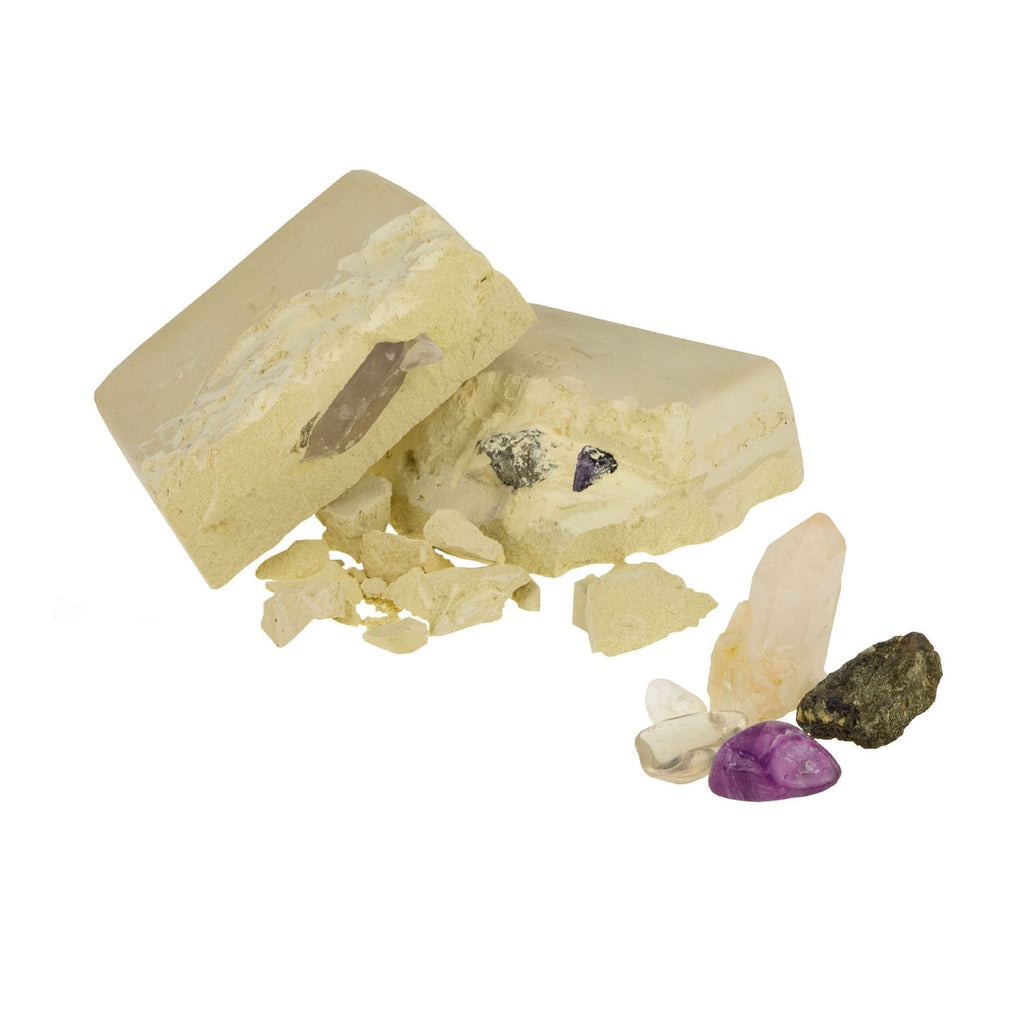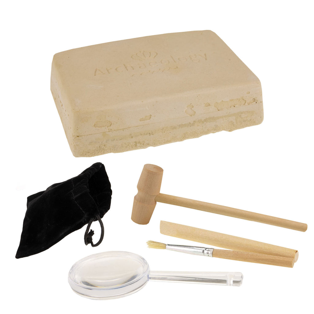 Ga op ontdekkingstocht met deze uitgraafset. Graaf voorzichtig de kristallen op die in het blok verstopt zitten. Begin met beitel en de hamer, maar zodra je iets op het spoor bent pak je het kwastje en het vergrootglas erbij voor beter beeld en zodat je het kristal niet beschadigd raakt. Inclusief zakje waarin je de gevonden kristallen kunt bewaren. Ben jij ook zo benieuwd wat je vindt?