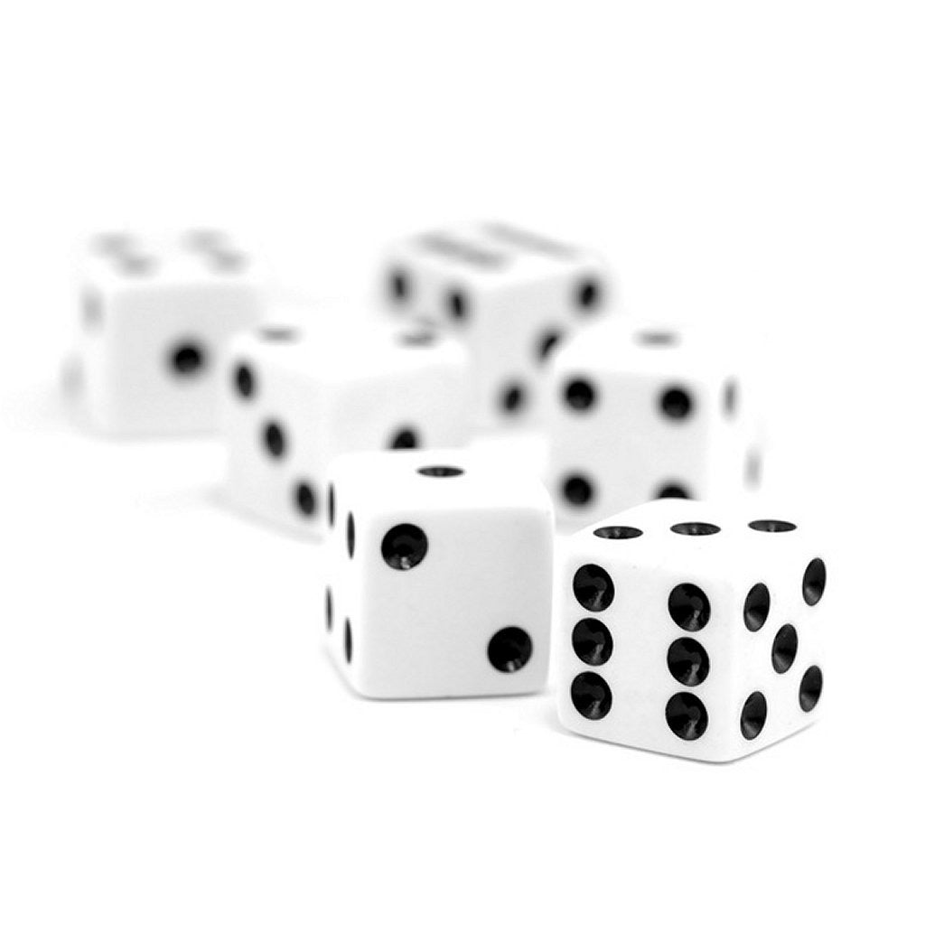6-zijdige dobbelsteen van 16 mm. Verpakt per 6 stuks in zacht plastic doosje. Kleur voor wit.
