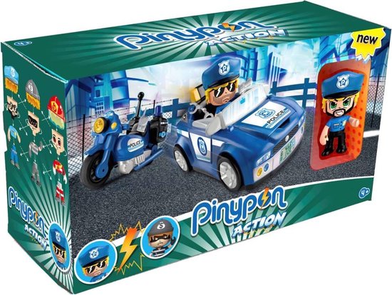 Pinypon politiewagen.Beleef spannende avonturen met de Action Super politievoertuigen van Pinypon. De Mix is Max figuren kunnen gecombineerd worden met de brandweervoertuigen. Combineer verschillende accessoires voor nog meer speelplezier! Inhoud: 1 Pinypon Mix is Max drinken, verschillende accessoires, 1 politiemotor en 1 politieauto. Maak jouw eigen poppetje! De Mix is Max figuurtjes zijn zelf samen te stellen voor eindeloos veel combinaties. Wordt in fullcolour verpakking geleverd. Geschikt voor kinderen vanaf 4 jaar.
