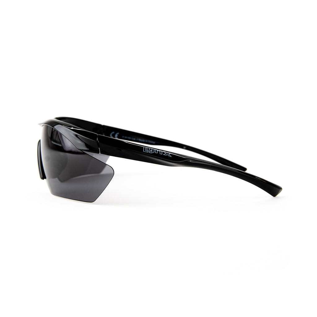 De zwarte Lynx Stelvio premium sportzonnebril is perfect voor iedere zonnige fietsrit. Het frame van de bril is gemaakt van duurzaam, flexibel en lichtgewicht TR90 thermoplast materiaal. Het zachte rubberen neusstuk zorgt voor maximaal comfort en grip. De standaard donkergrijze (Smoke) lenzen bieden 100% bescherming tegen Uv-straling en zijn voorzien van anti-condens om te voorkomen. De lenzen hebben een lichtdoorlatendheid van categorie 3 (9 - 18%), wat ideaal is voor fietsen op zomerse, zonnige dagen. De antislipvlakken aan de binnenzijde van de brillenpootjes zorgen ervoor dat de bril perfect op zijn plek blijft zitten. De fietsbril wordt geleverd in een zacht nylon opbergzakje met sluitkoord.