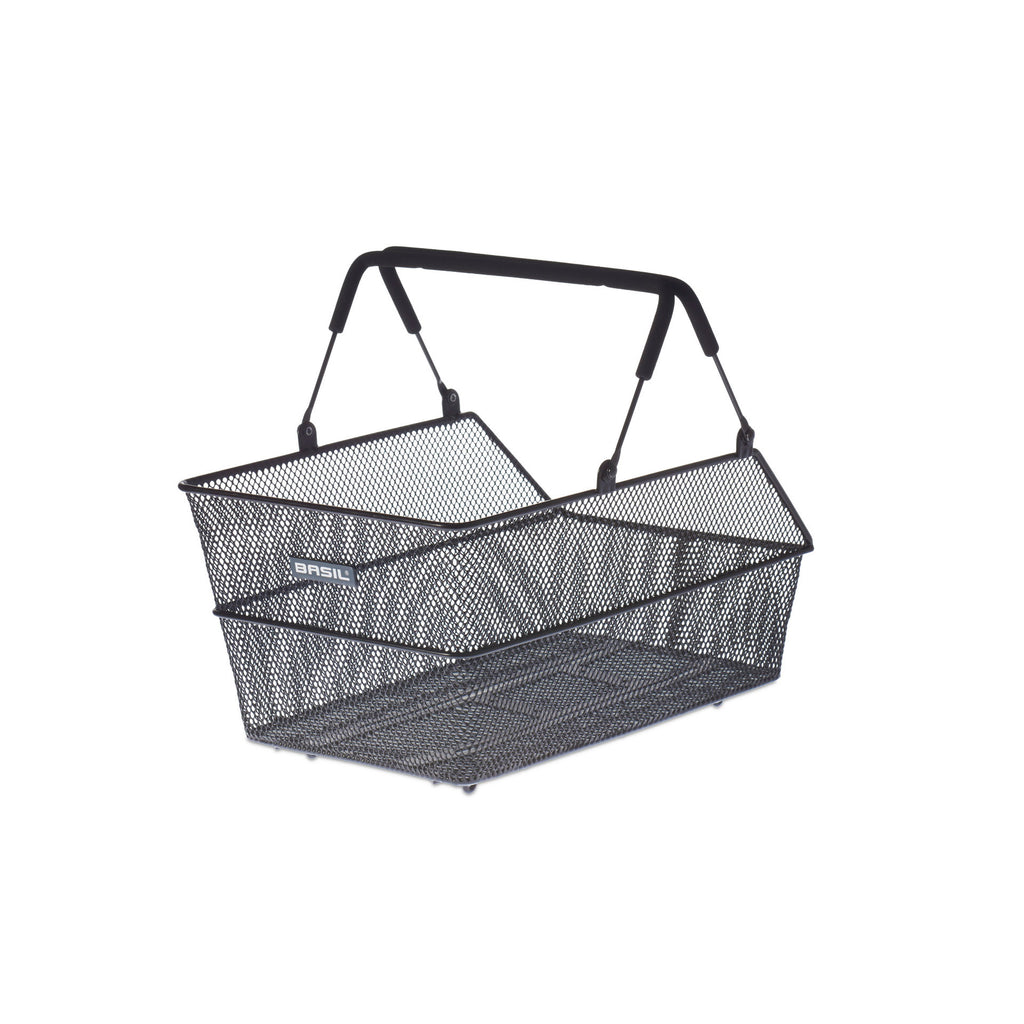 De Basil Cento Multi System is een zwarte praktische fietsmand voor achterop de fiets. De mand is gemakkelijk afneembaar door het handige hengsel, waardoor die overal mee naartoe te nemen is. Op deze manier wordt het boodschappen doen of een bezoek aan de markt je gemakkelijker en leuker gemaakt. Zoals de naam Basil Cento Multi System al aangegeven, valt deze mand onder het Multi System van Basil. De bodem van deze mand is geschikt voor MIK, Racktime, i-Rack/Carrymore platen (niet inbegrepen). De adapterplaten dienen je apart te kopen. De beschermvoetjes van deze Basil Base zijn ervoor om het beschadigde van de bodem tegen te gaan. De mand is gemaakt van fijnmazig staal, heeft een verstevigd frame en een inhoud van 21,5 liter. Hier kun je dus heel wat boodschappen of andere dagelijkse benodigdheden kwijt. Je plaatst deze mand in lengterichting op je bagagedrager. De afgeschuurde bovenkant zorgt voor een mooie afwerking. Deze Basil Cento Multi System mand is één van de 6 Multi System modellen.