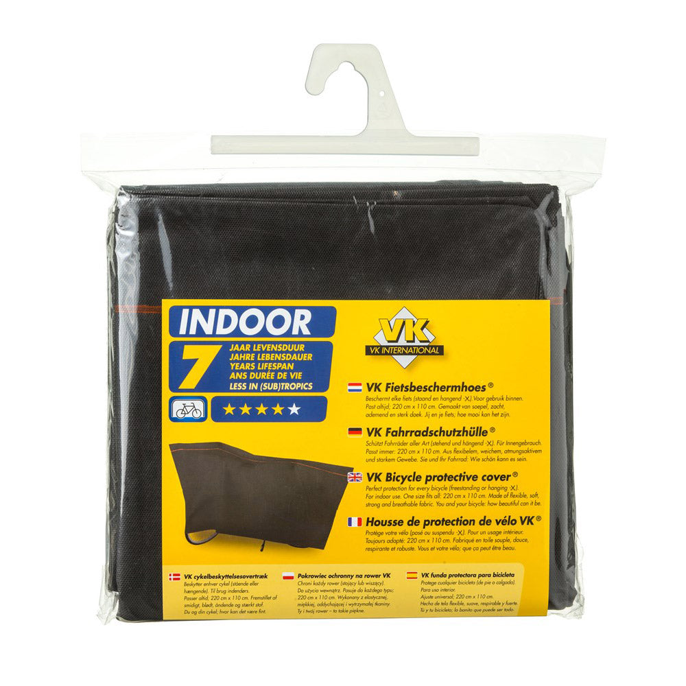 Een VK fiets indoorpyjama/hoes in de kleur chic zwart. Deze pyjama/hoes is gemaakt van soepel, zacht, matig en sterk doek. Het heeft afmetingen van 110x210 cm.