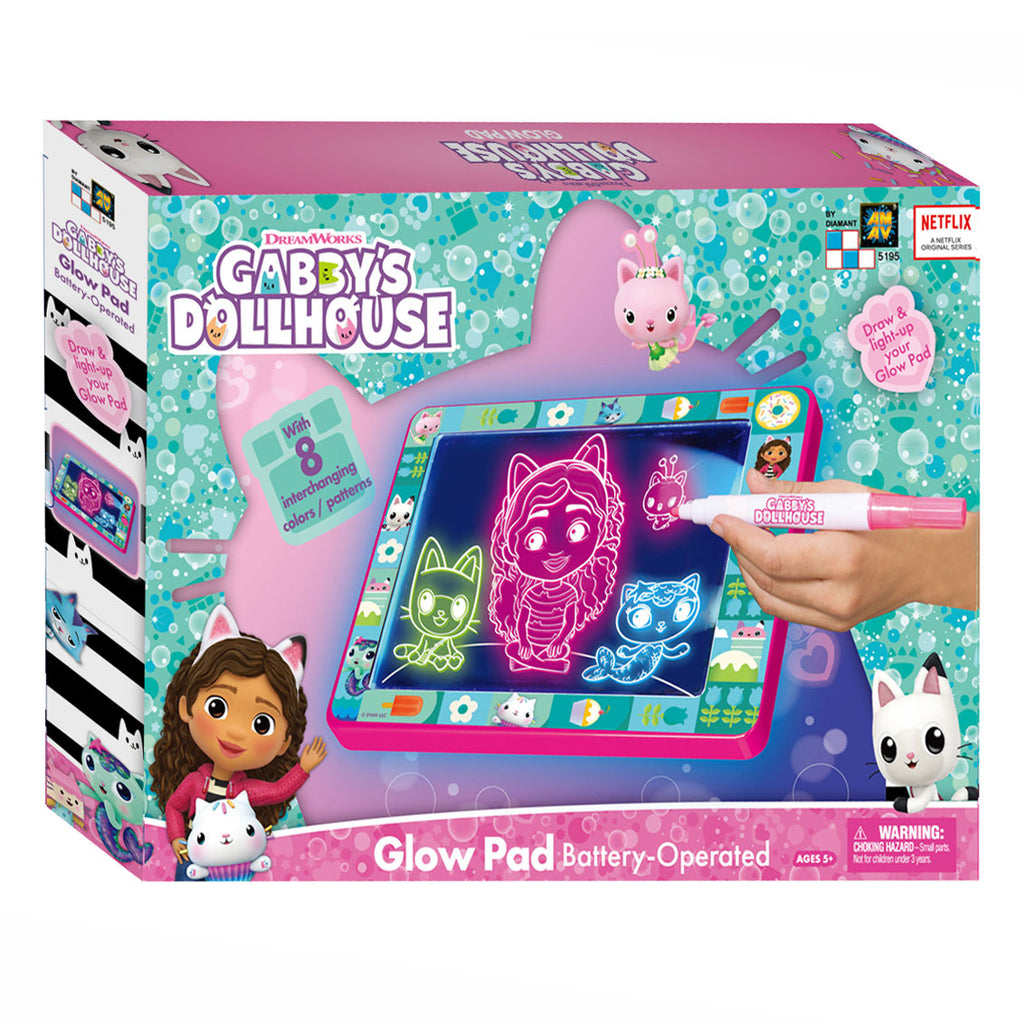 Welkom bij Gabby's Dollhouse, waar Gabby's creativiteit en creatieve katten samenkomen voor kleurrijke magie! Een draagbaar hi-tech tekenbord ter grootte van een tablet, met 8 verwisselbare knipperende kleurrijke lichten. Inclusief 2 speciale uitwisbare markers. Geschikt vanaf 3 jaar.