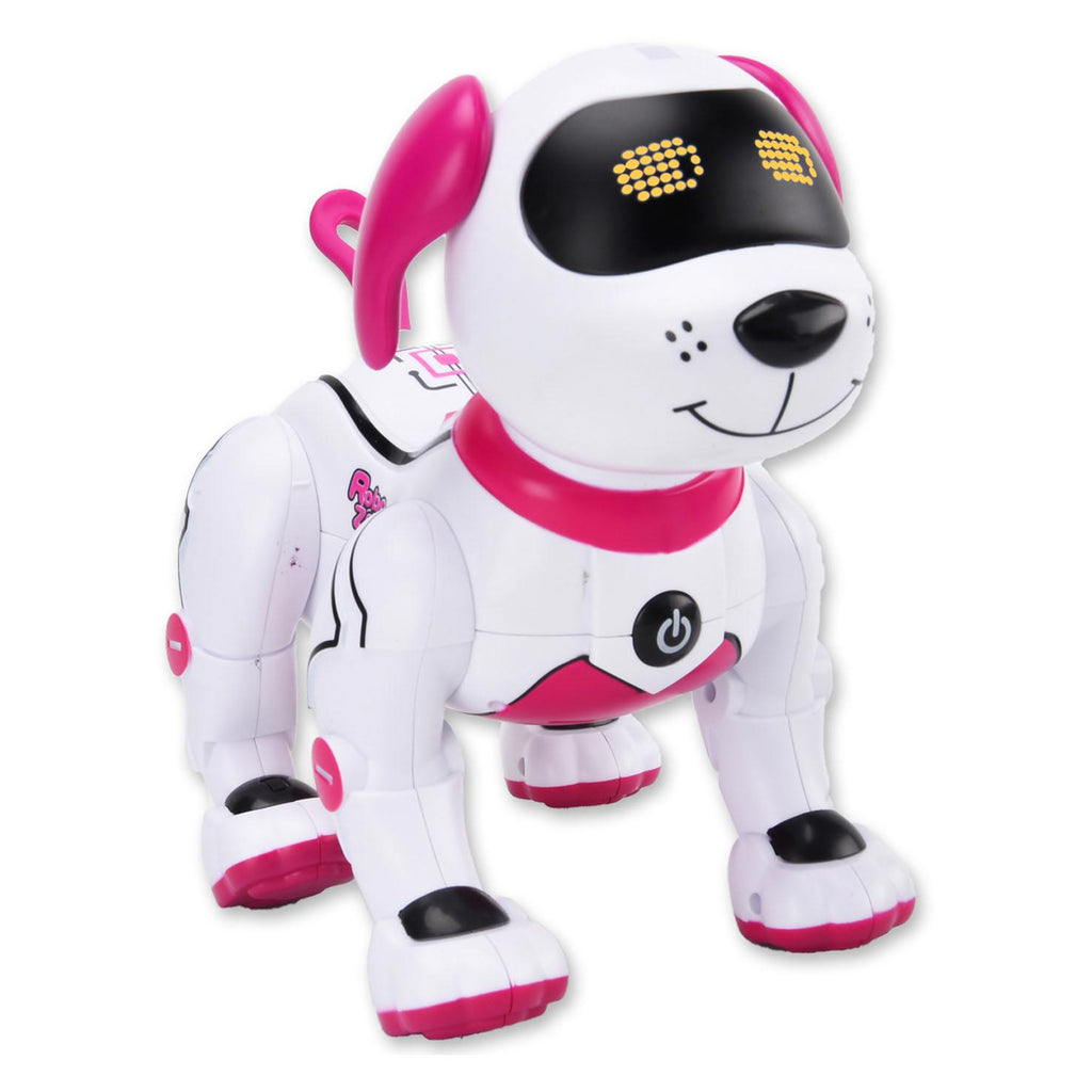 Robothond Robo Zoë is een interactieve stunthond met LED verlichte ogen. De wit/roze hond maakt hondengeluiden, kan blaffen, grommen en dansen op 3 verschillende muziekjes. Met de controller kun je haar allerlei kunstjes laten uitvoeren. Zo maakt ze een handstand of doet ze push-ups. Ze kunnen liggen, zitten en "hallo zeggen" door op haar achterpoten te gaan zitten en te janken. Robo Zoë reageert ook op aanraking. En je kunt haar programmeren, zodat ze allerlei actie's achter elkaar kunnen voltooien. Het volume is regelbaar. Zoë heeft een aan/uit-knop maar zal ook zelf in slaapmodus gaan na 80 sec zonder activiteit. Afmeting hond: 21x15x22cm (lxbxh) Afmeting verpakking: 32x17,5x26cm (lxdxh) Batterij informatie: hond: 4 x AA batterijen (niet meegeleverd) - Controller: 2 x AAA batterijen (niet meegeleverd). Leeftijd: 5 jaar+.