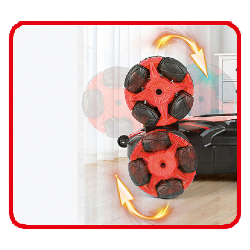 De ultieme transformerende stuntauto inclusief accu en USB oplader! Bekend van TV! De op afstand bestuurbare2.4 Ghz full function X Rover is stoer, snel en wendbaar. Niets is te gek voor deze ultieme RC Stuntauto, want met zijn universele wielen kan hij alle ondergronden aan. Met de controller laat je de stuntauto de snelste en coolste trucjes doen. Zo kan hij 360 graden spinnen, driften en een flip maken en verder rijden op de andere kant. Ook transformeert de X Rover met een druk op de knop van een platte racer, waarmee je keihard kunt rijden op een verharde weg, naar een hoge off-roader, waarmee je kunt stunten over obstakels en kunt rijden op onverhard terrein. Met verlichte koplampen en demoknop, waarmee de auto een show geeft wat de stuntauto allemaal kan.
